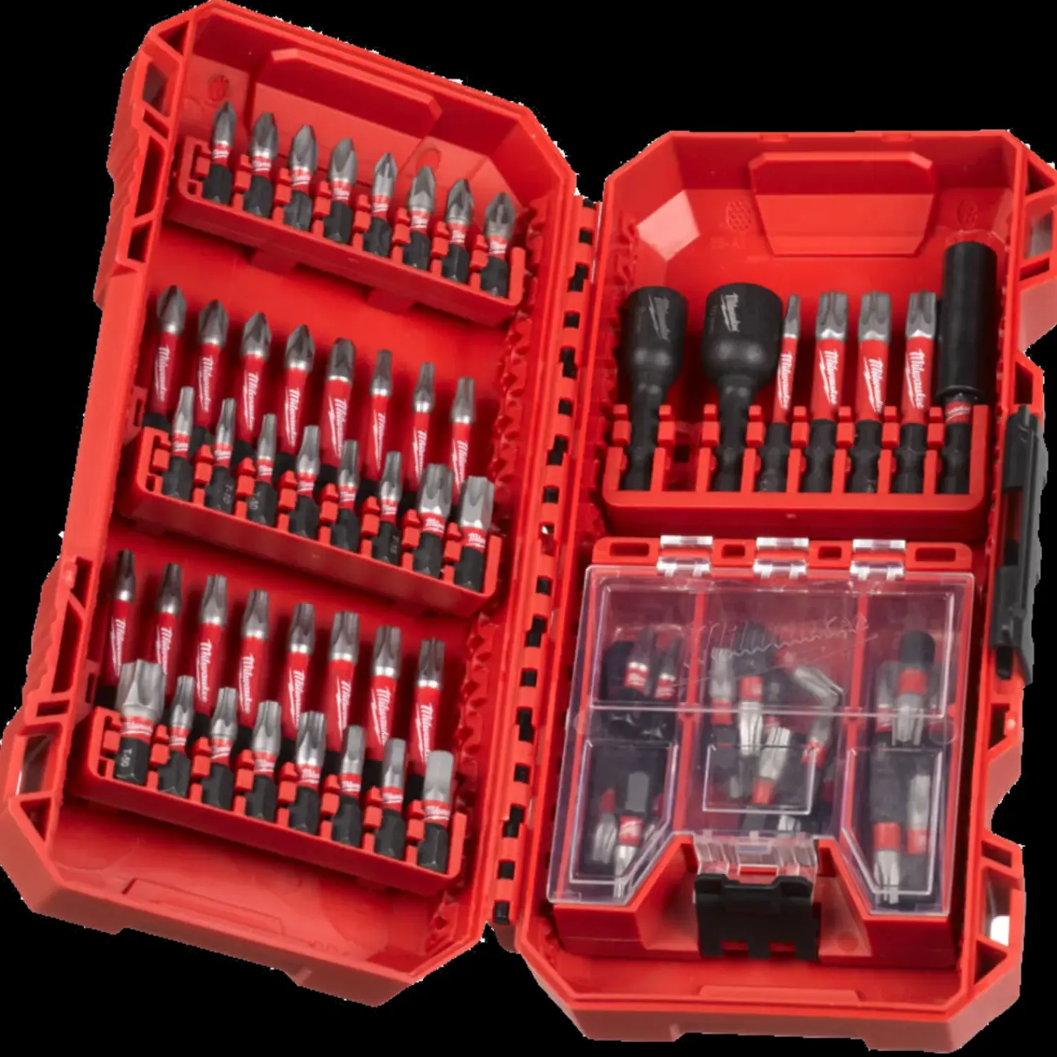 - 52 x 25 mm længde 1 x PH1 / 3 x PH2, 1 x PZ1 / 3 x PZ2, 3 x TX10 / 3x TX15 / 10 x TX20 / 9 x TX25 / 9 x TX30 / 2 x TX40 / 1 x TX50, 1 x TX BO15 / 1 x TX BO20 / 1 x TX BO25 /1 x TX BO30, 2 x Hex 4 mm / 1 x Hex 5 mm.