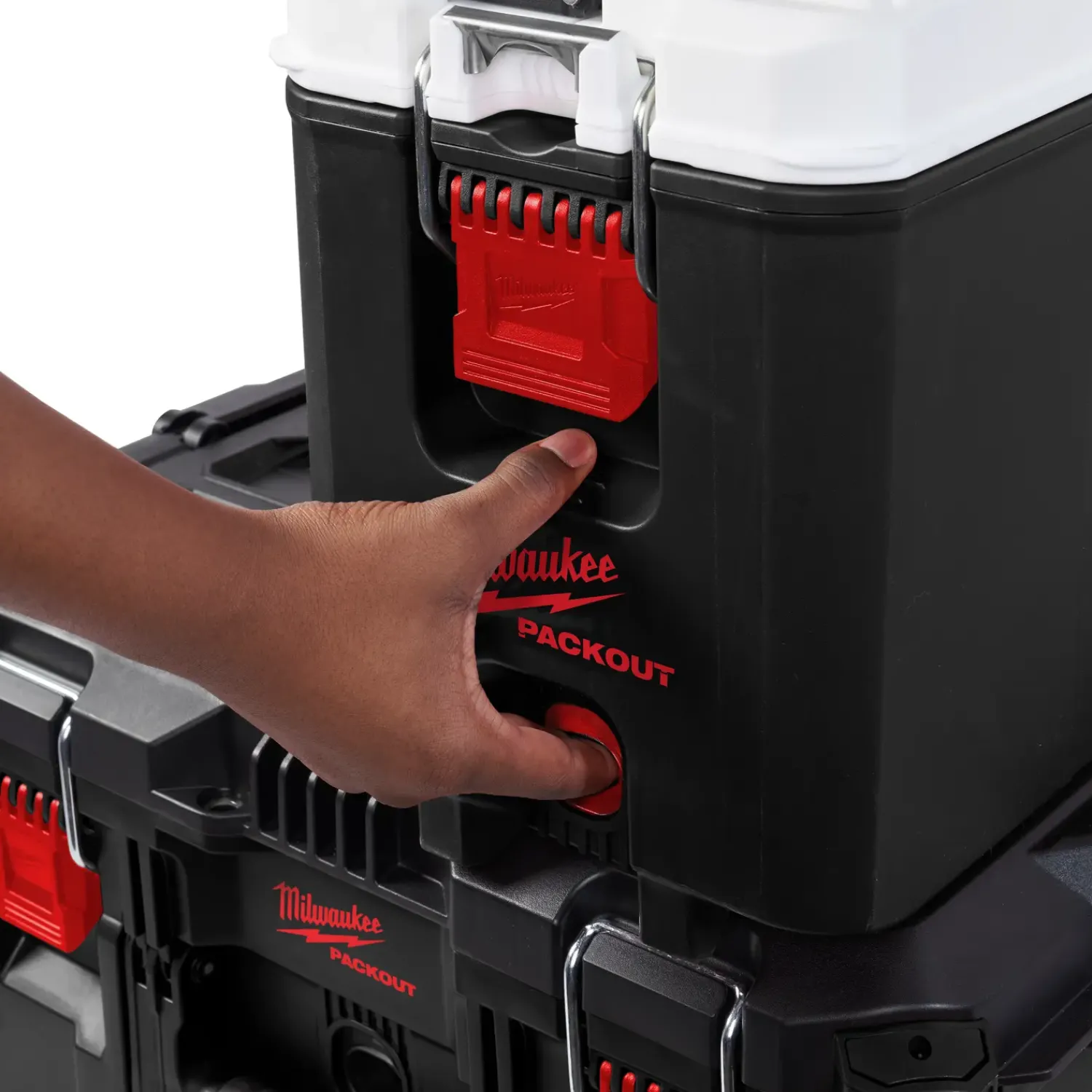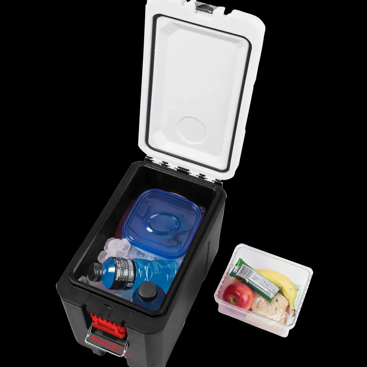 Dobbelt premium isolering holder indholdet koldt i op til 30 timer. IP 65-beskyttelse forhindrer lækage og beskytter indholdet mod snavs og skidt. Integreret flaskeåbner. Aftagelig bakke til separat opbevaring af personlige genstande som er hævet over is og vand i bunden. Kapacitet på 15 l. Lavet af slagfast materiale så den kan klare hverdagen på byggepladsen. En del af PACKOUT™ opbevaringssystemet.