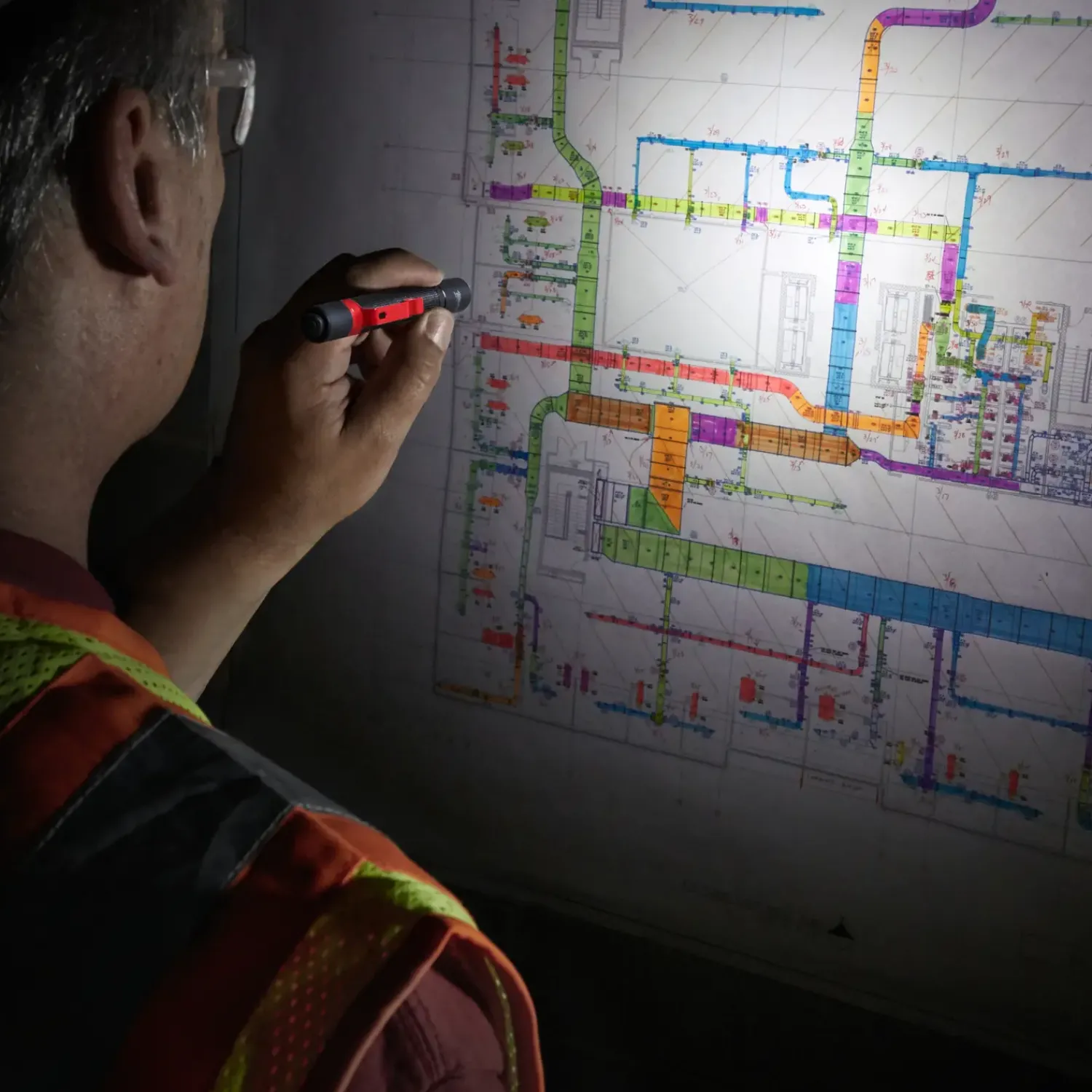 - TRUEVIEW™ arbejdslys på 100 Lumen med op til 30 m lysstråle til inspektionsopgaver