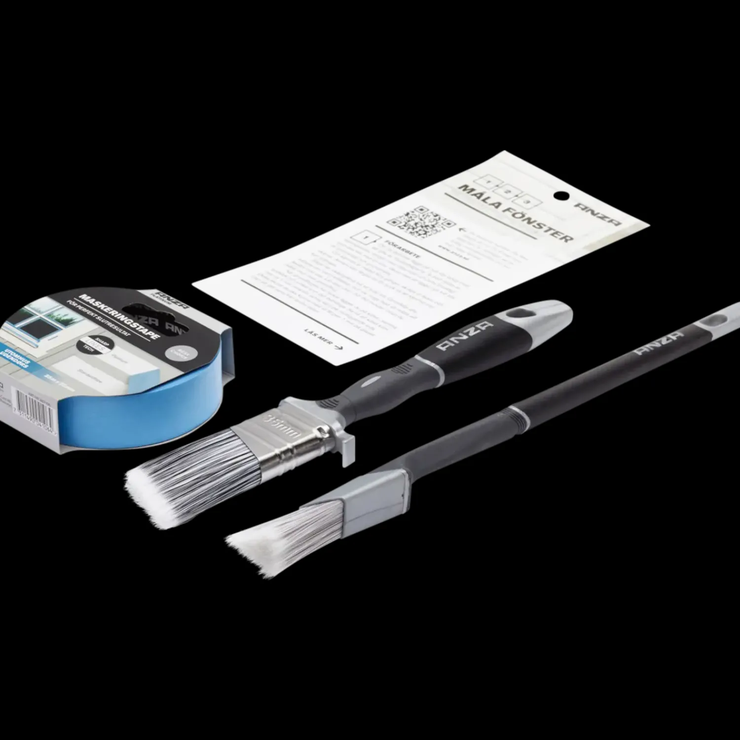Et komplet vinduessæt i topklasse. Sættet indeholder 1 stk. 20 mm præcisionspensel, en 35 mm skrå lakpensel og en rulle malertape, der kan anvendes både til inde- og udendørs projekter. Med de to pensler får du den perfekte kombination til detaljearbejdet og til at komme ind i hjørnerne. Penslerne taber ikke hår og kan bruges til alle typer maling, lasurer og olier, samt på alle underlag.