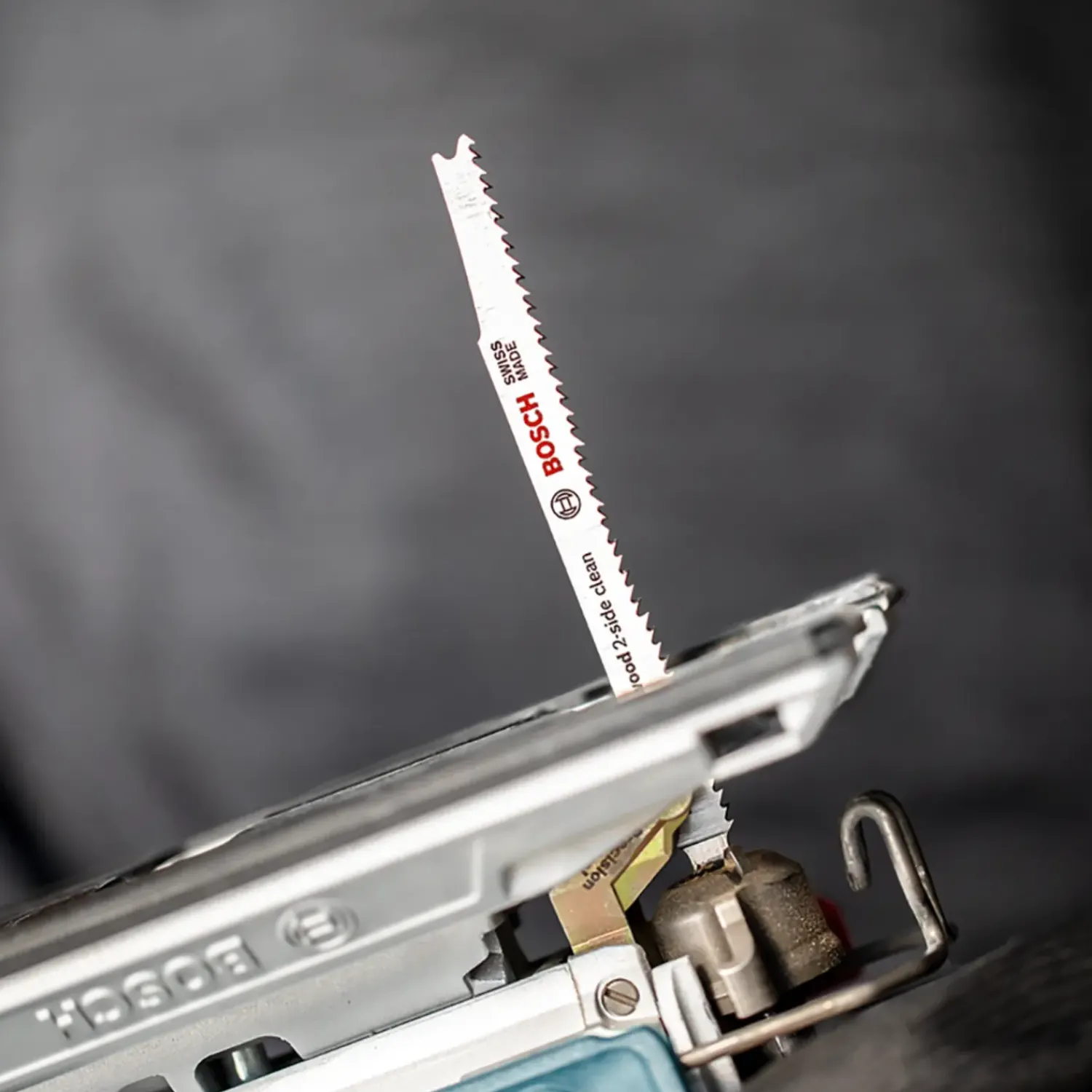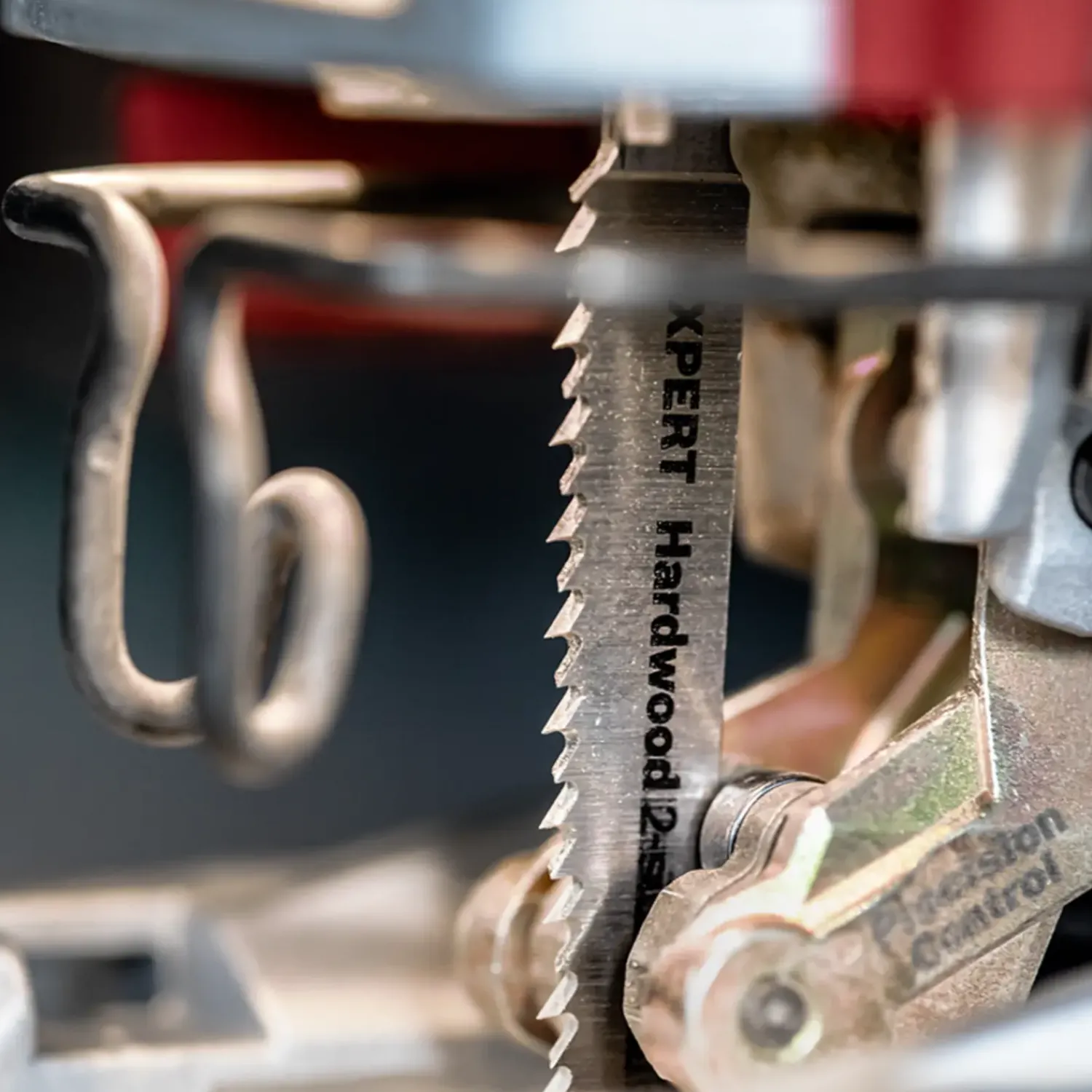 At sikre, at den ‘rene side’ af et stiksavssnit er på den synlige del af arbejdsmaterialet, har altid været en ædel kunst blandt snedkere og træarbejdere. Nogle gange kan du vende arbejdsemnet, andre gange kan stiksaven holdes på hovedet. Eller du kan bruge EXPERT ‘Hardwood 2-side clean’, der giver et perfekt splintfrit snit på begge sider takket være de modsatrettede tænder.