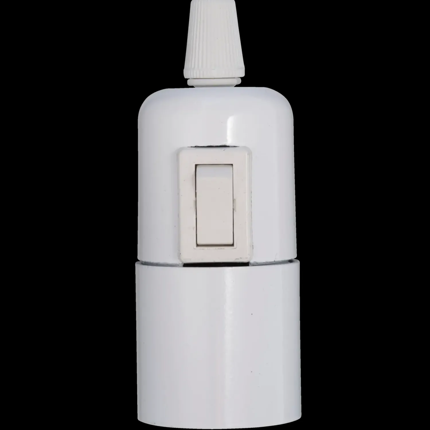 Fatning med afbryder bruges til f.eks bordlampe. Med trækaflastning og beskyttelseshætte.