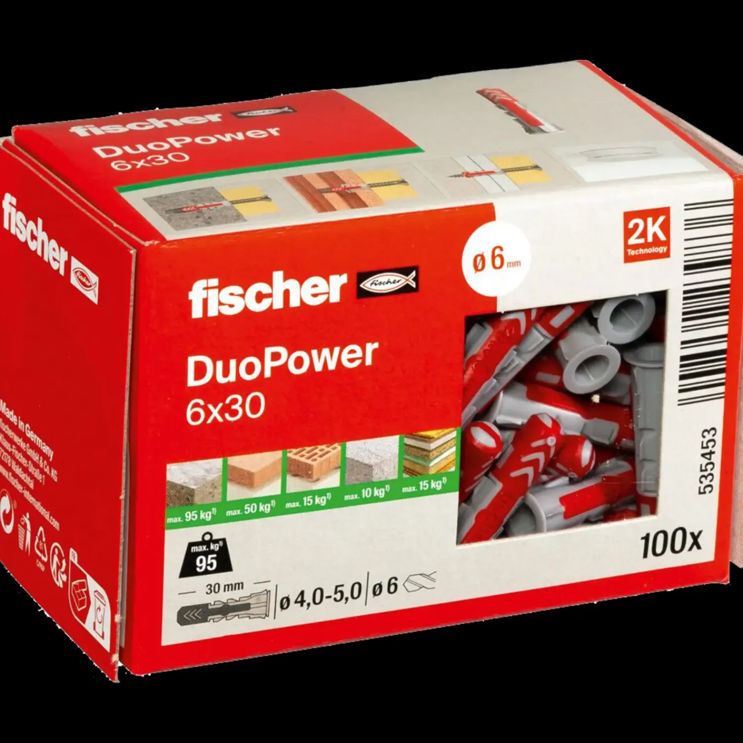 fischer DuoPower er den perfekte kombination af styrke og sikkerhed til dine monteringsopgaver. Pluggen, lavet af nylon af høj kvalitet, har et unikt to-komponent design i grå og rød. Den grå komponent tilpasser sig byggematerialet og aktiverer den optimale funktion, mens de røde ekspansionsvinger giver ekstra sikkerhed.