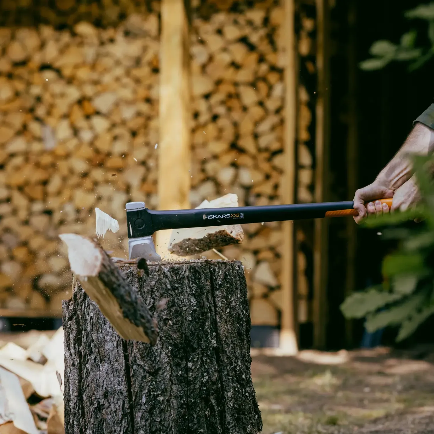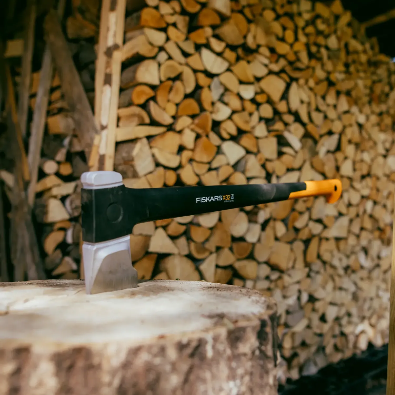 - Fiskars X32 kløveøkse med stort øksehoved er ideel til at kløve store trækævler på mere end 30 cm i diameter
