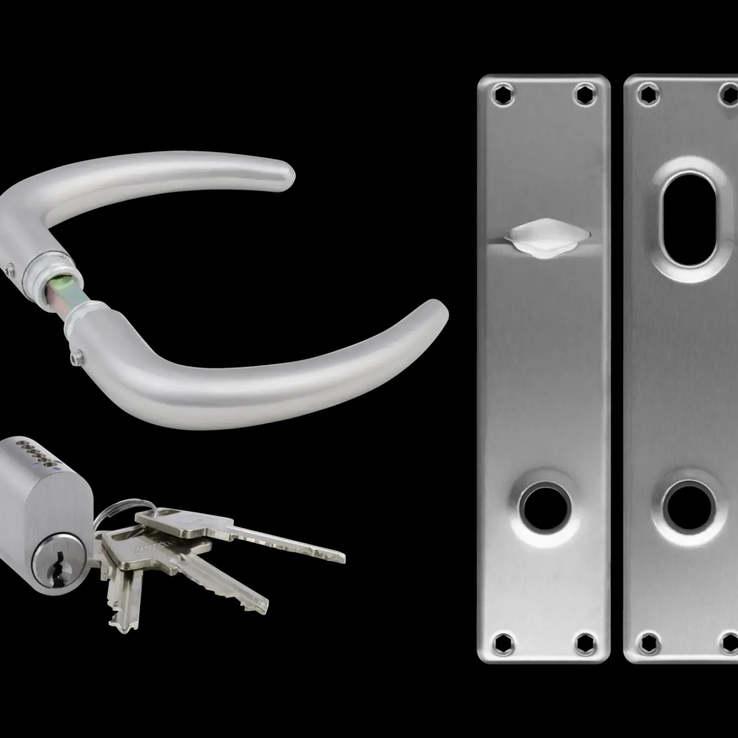 Døregrebet Coupe leveres inkl. langskiltesæt, en 6-stift cylinder samt 3 nøgler.