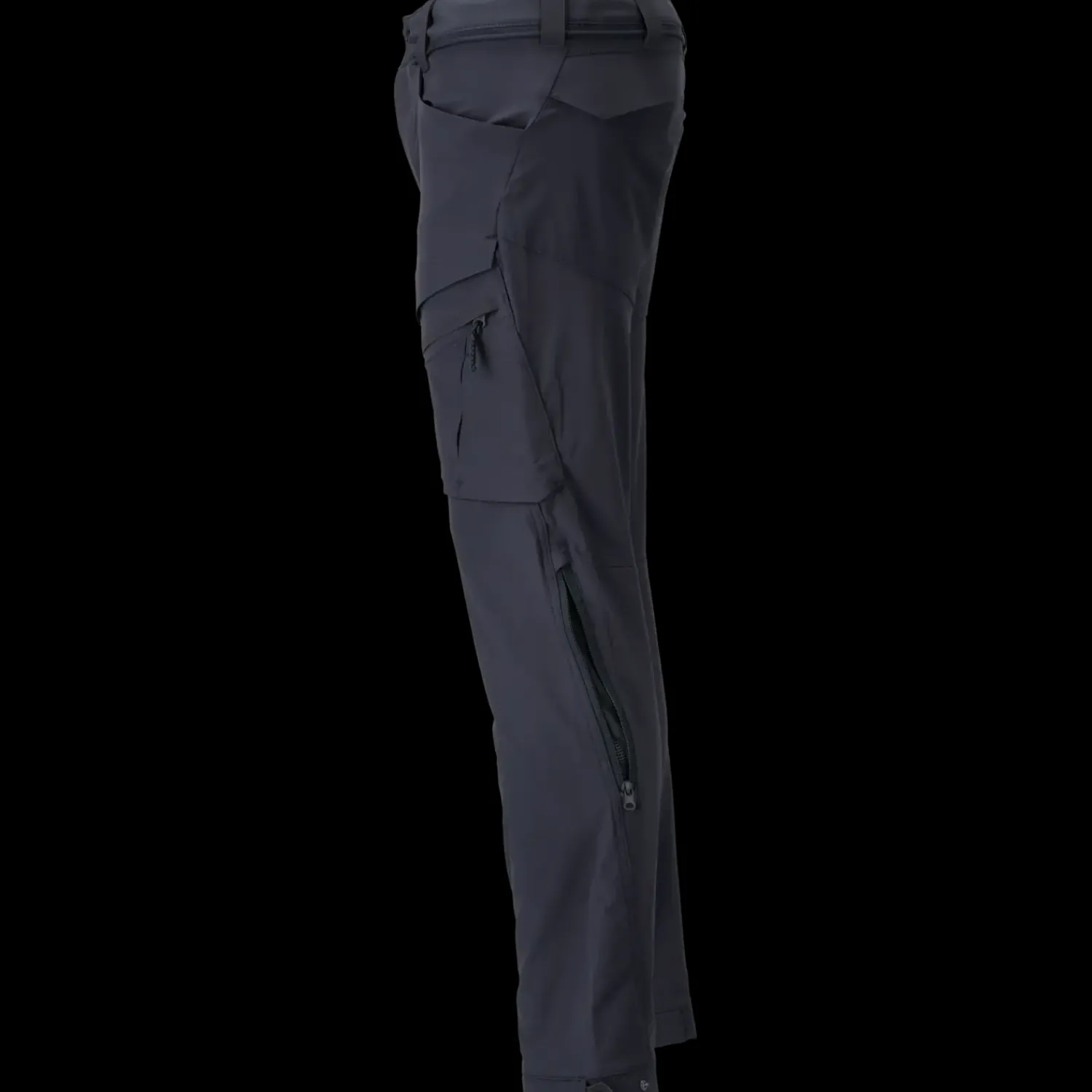 Ultimativt strækstof med lav vægt og høj slidstyrke. Har en vandafvisende finish. Forberedt til hængelommer med Click Pocket System. Ventilationshuller på dele af produktet. Bæltestropper. Gylp med lynlås. Net med ventilation i siderne – åbnes med lynlås. Forlommer. Baglomme med klap. Telefonlomme med lynlås. Lommer med lynlås foran på lår. Lomme med klap foran på lår. Trykknapregulering ved fod..