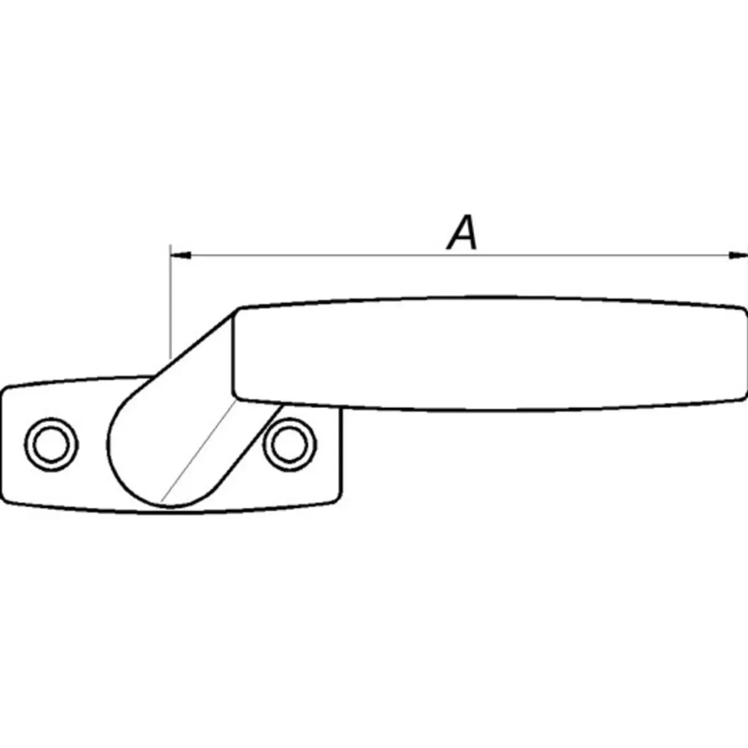 Mat forkromet paskvil greb – venstre.Størrelse (se billed 2):A = 102 mm.Anbefalet skrue diameter: Ø 4,0 mm. (medfølg…