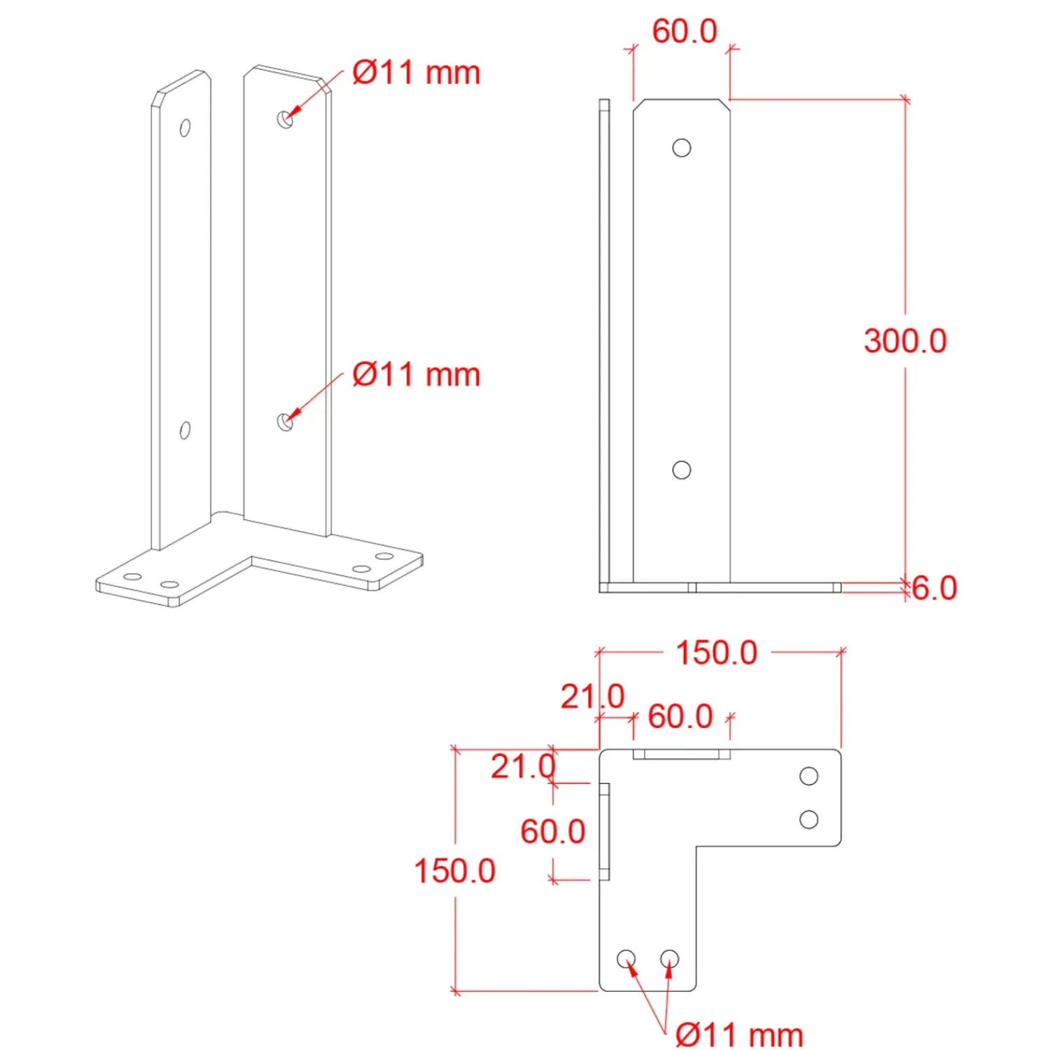 Stolpefod i varmgalvaniseret stål fra Plus til nedstøbning i fundament. Stolpelængden skal beregnes efter hegnets højde + 7 cm afhængig af afstanden fra underkant af hegnet til terræn.