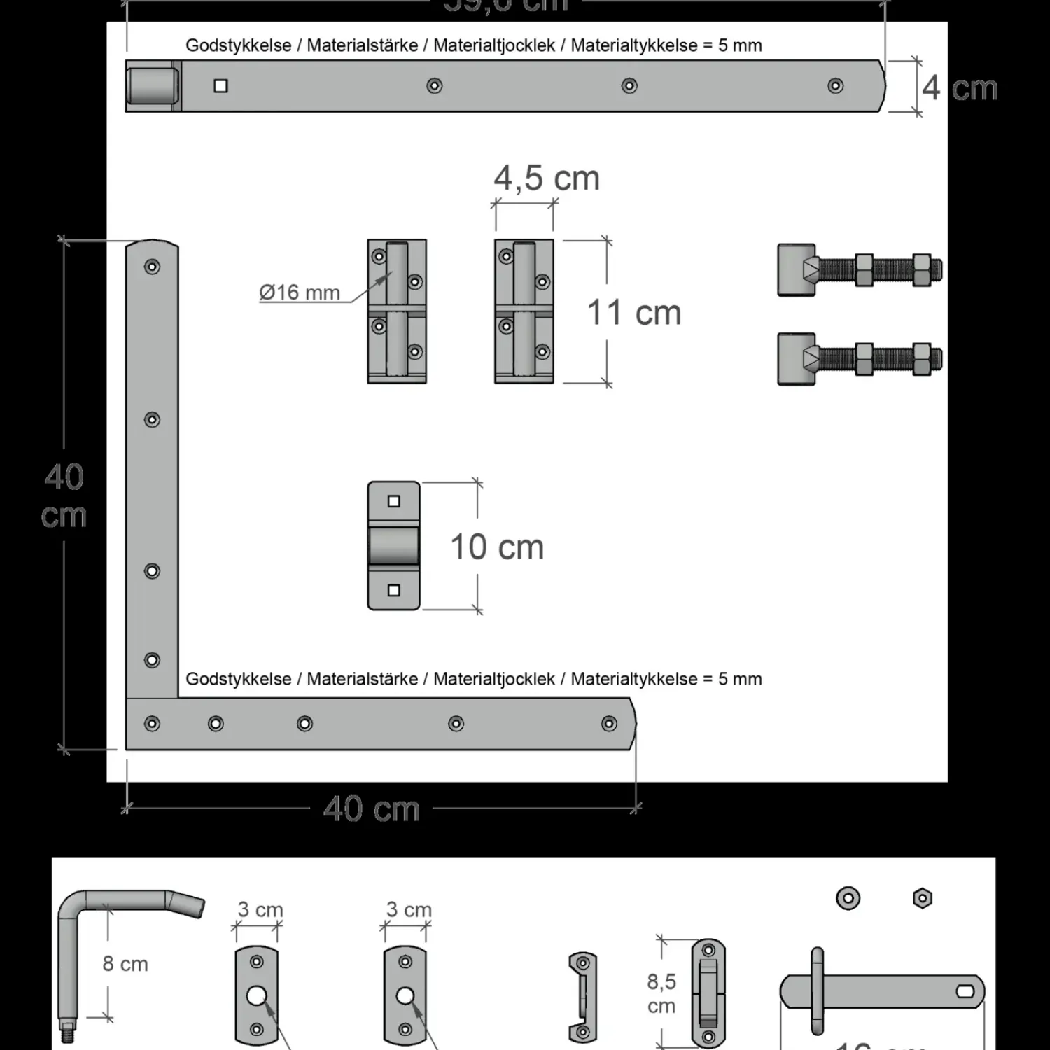 New Plus Vinesse enkeltlåge inkl. beslag 100×98 cm sort