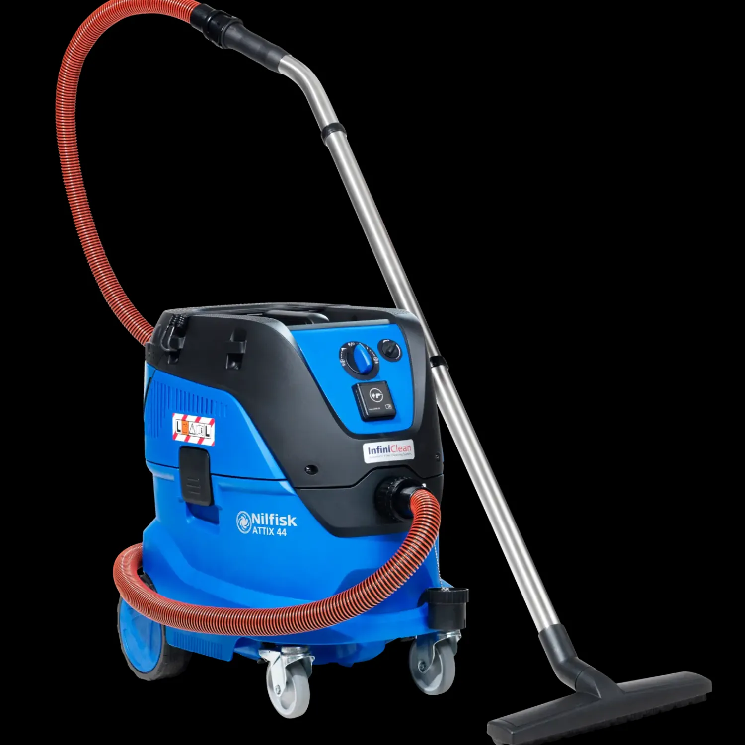 Våd-/tørsugernes sugestyrke er meget høj i kraft af den nyudviklede konstruktion. Det betyder forøget ydeevne samt forbedret lufthastighed i slange, mundstykke og værktøjskobling. Resultatet er eminent opsamling af støvpartikler og produktivitet. Nilfisk InfiniClean™ systemet renser automatisk filteret hvert 15. sekund. ATTIX 44 serien fås i sikkerhedsstøvklasse L, M og H. Våd-/tørsugerne har en 100 % forseglet luftstrøm selv under filterrensning, så eventuelt farligt støv bliver i maskinen.