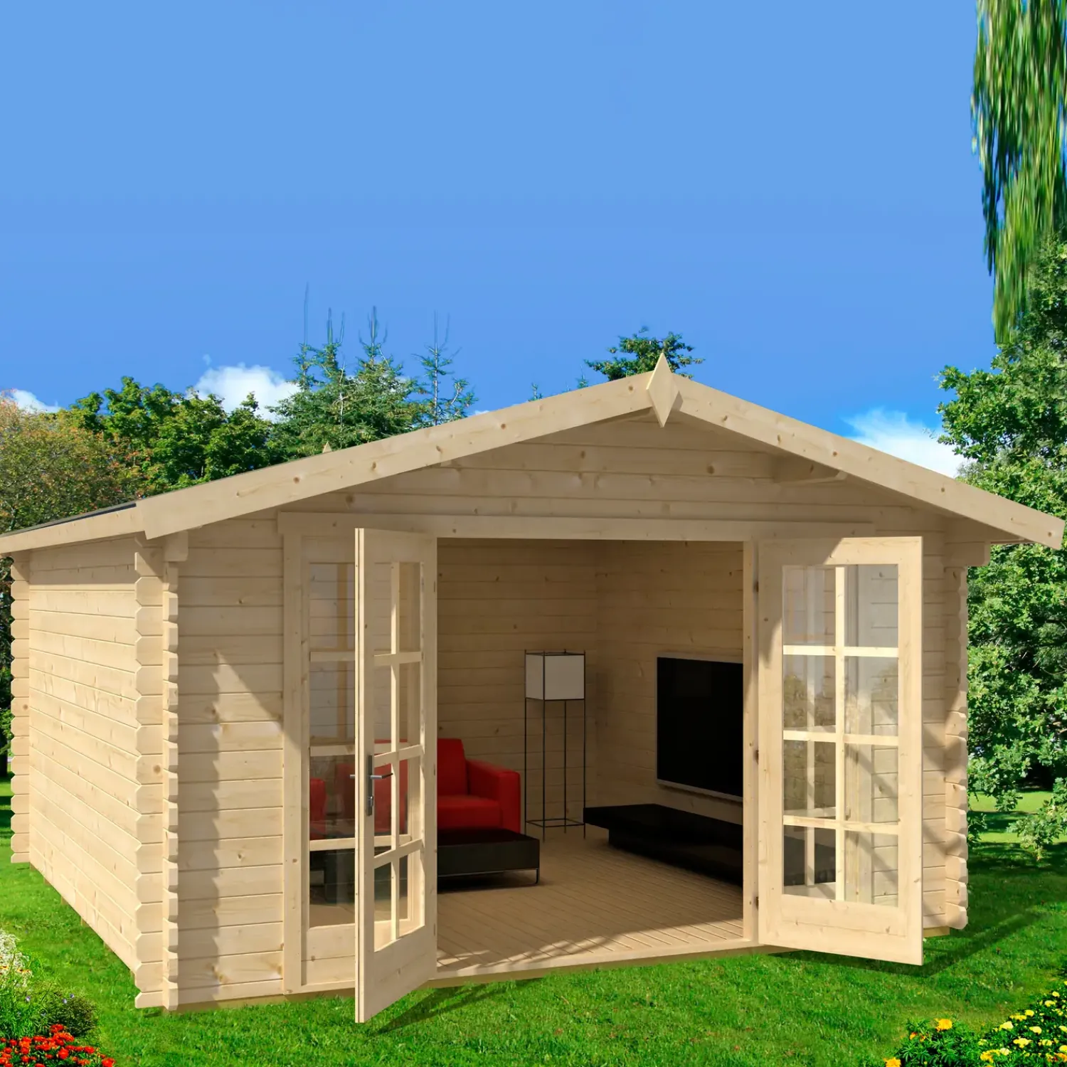 Hytten er fremstillet af 40 mm bjælker i 100 % naturligt og levende træ, der ikke er behandlet. Du vil derfor kunne opleve at træet har forskellige toner, hvilket sikrer dig en unik hytte hvor hver en detalje, tekstur og grenmønster er sin egen. Derudover er hytten fremstillet med en stor dobbeltdør med glas samt vinduer i siden hvilket giver et fint lysindfald. Nils hytten leveres med gulv. Ønsker du at tilkøbe underpap og tagpap skal det være svarende til 16 m2 for at dække hytten.