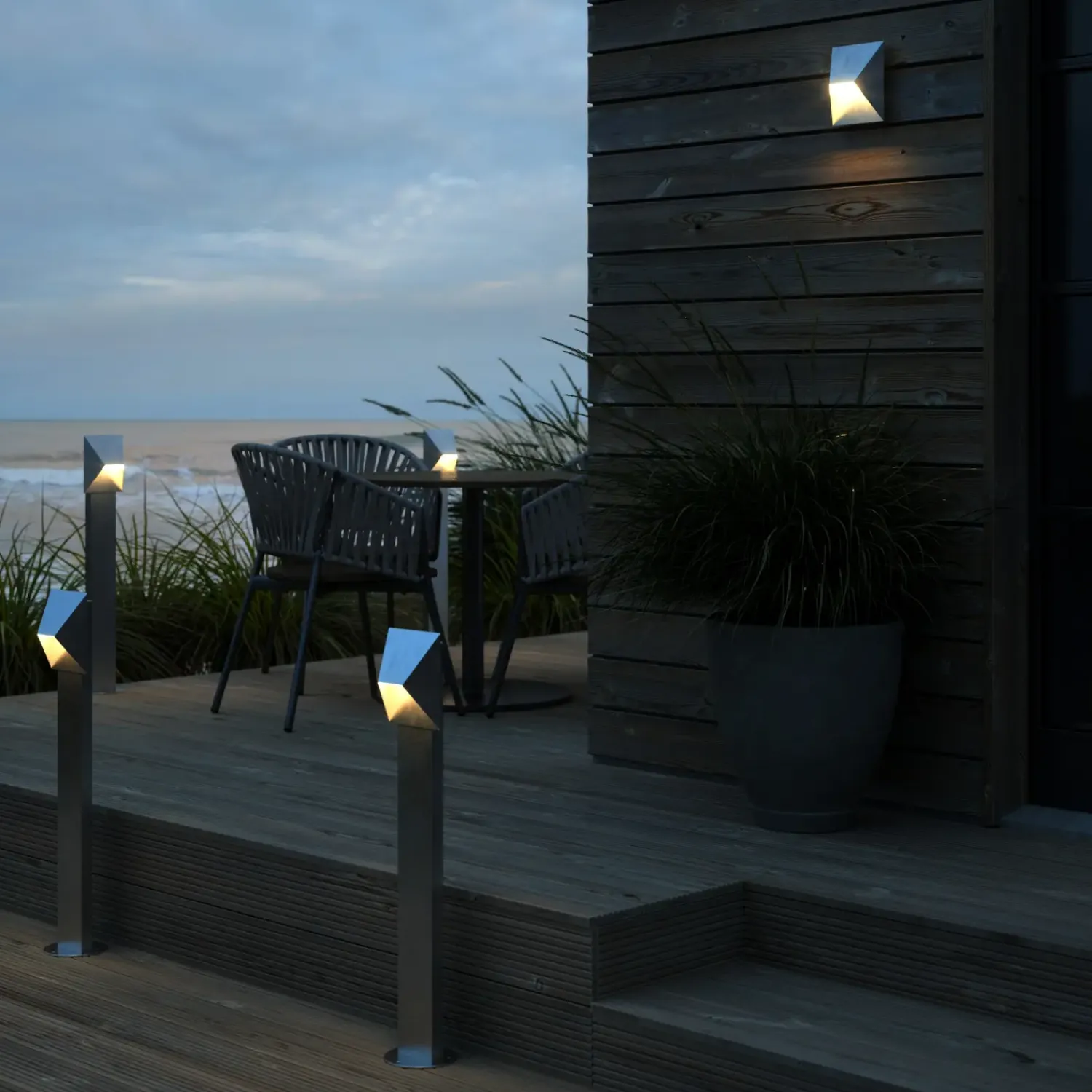 Pontio er en serie udendørslamper af den danske designduo Says Who i et strømlinet, arkitektonisk design. Den geometriske form tilføjer et moderne, men tidløst udtryk til dit hjem – mens den vinklede skærm giver et unikt og interessant look fra alle vinkler. Nem installation i jorden med Nordlux’ baseenhed.