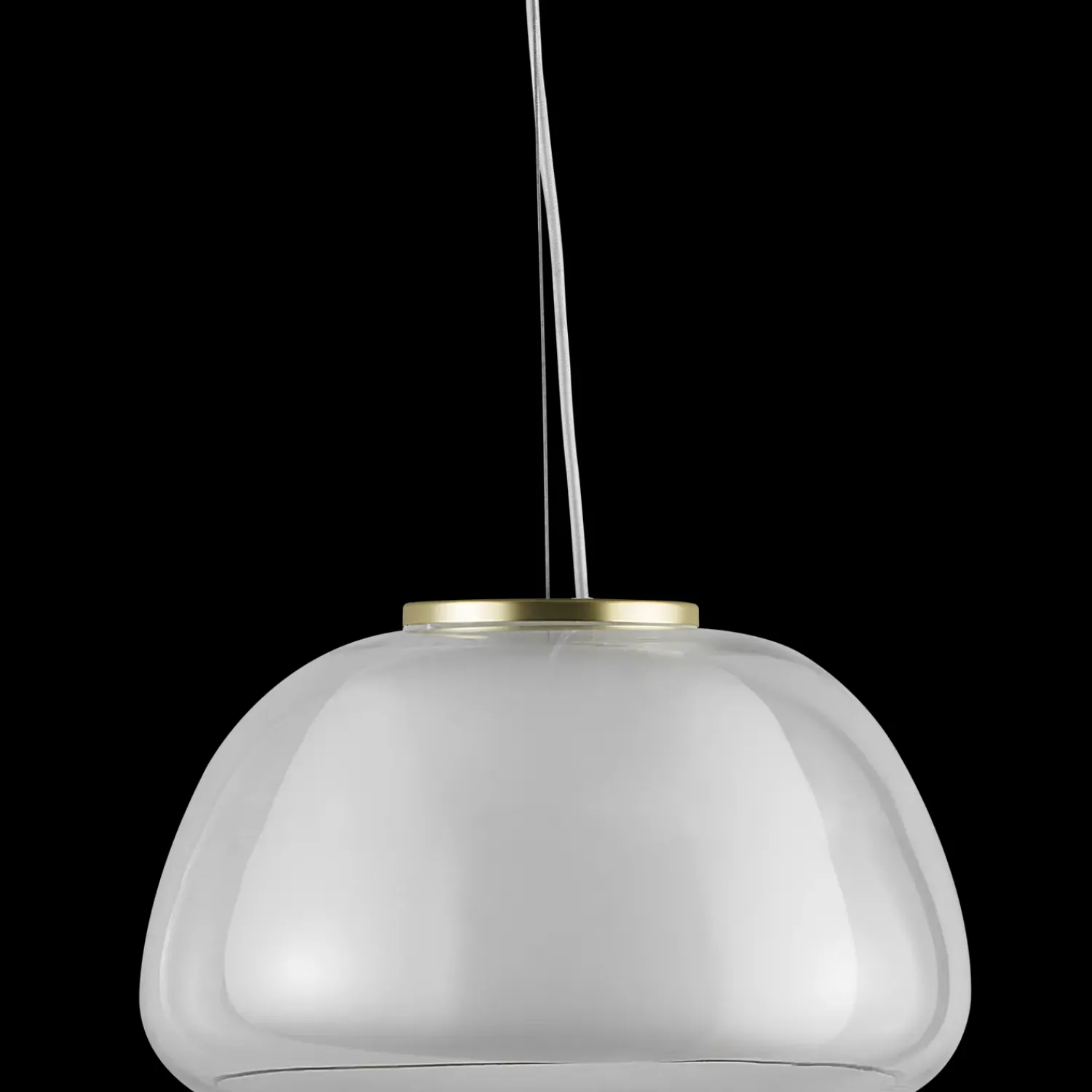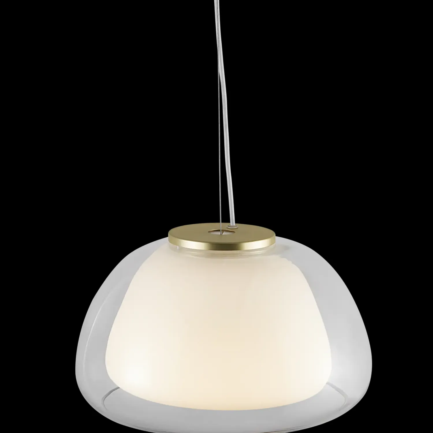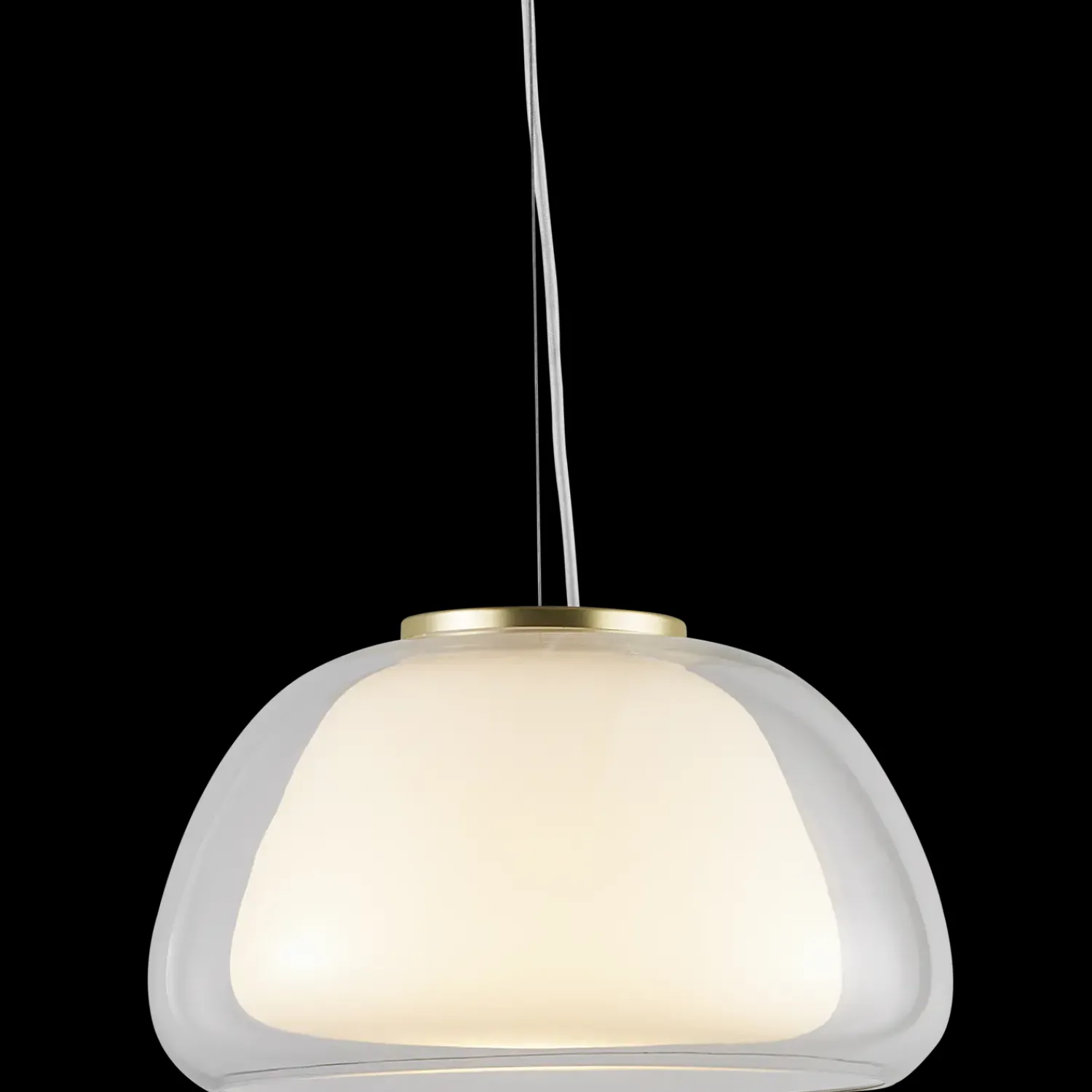 I Jelly pendlen er alt det overflødige skåret fra til fordel for et enkelt formsprog og indbydende udtryk, som glasset giver. Jelly består er to lag glas med den indre skærm i hvidt opalglas og den ydre i klart glas, som sammen giver lysskæret en blød og varm glød. En lille detalje er den fine messing top, som tilfører pendlen et eksklusivt udtryk. Jelly gør sig godt over spisebordet eller i ethvert hjørne, som kræver lidt ekstra stemning.