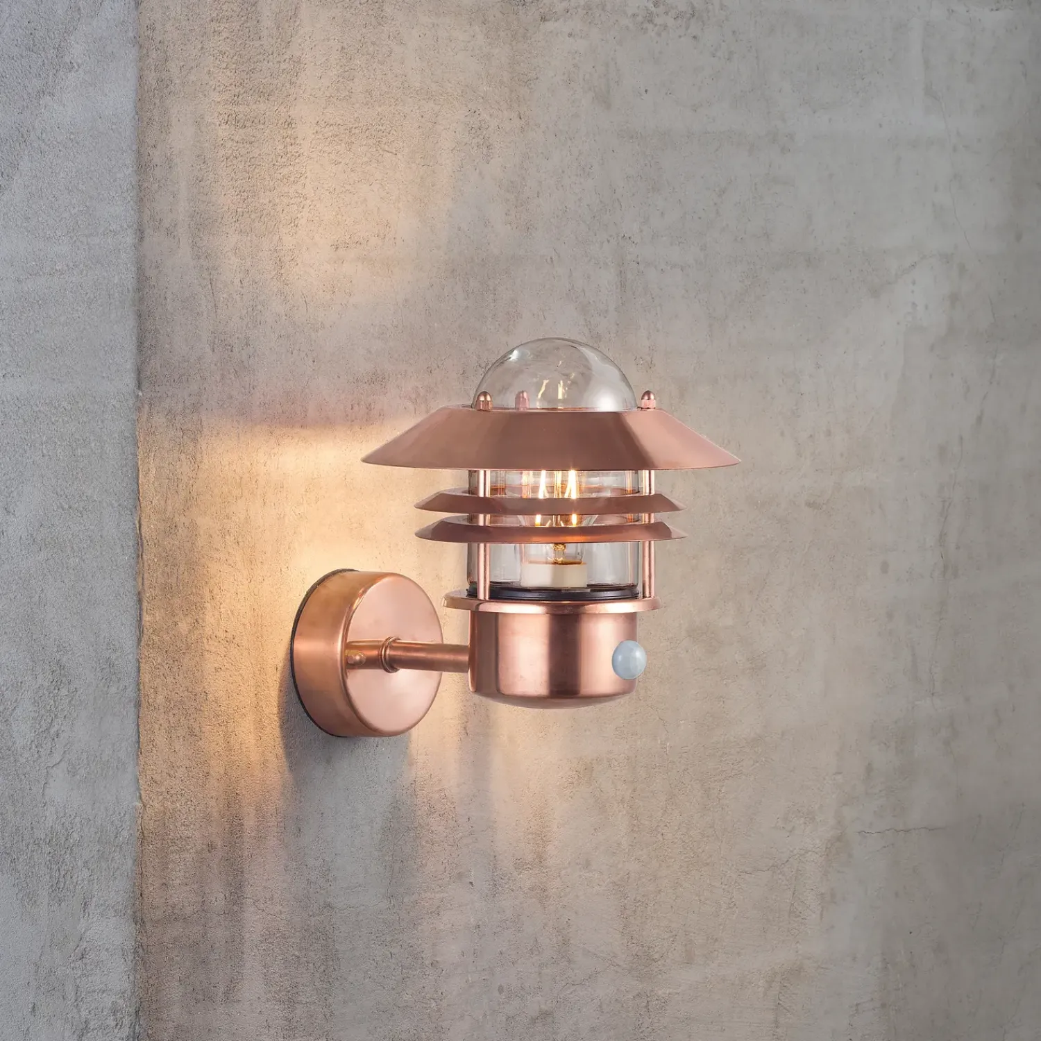Energibesparende og effektiv kobberfarvet Blokhus Sensor væglampe