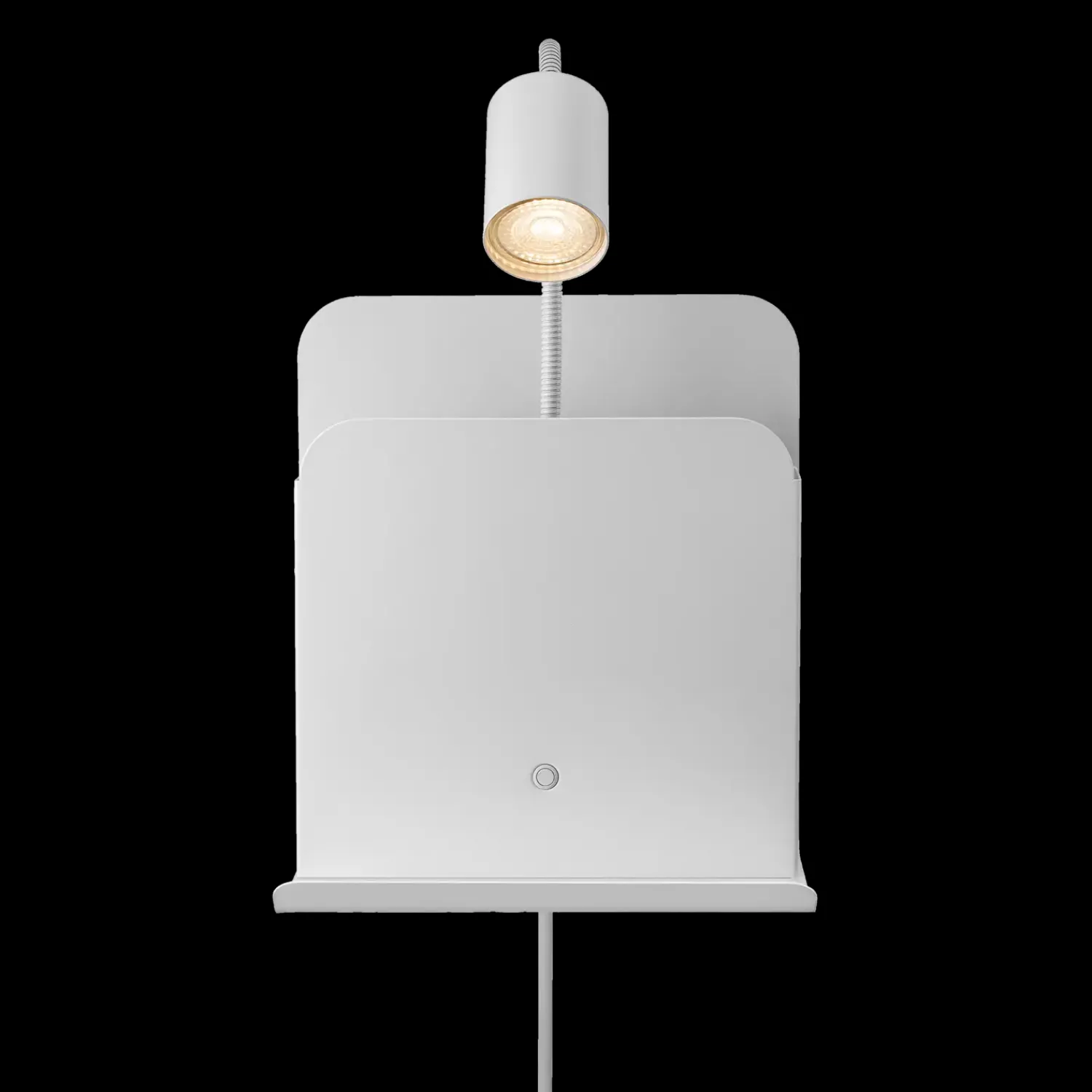 Roomi-væglampen er både en funktionel lampe, opbevaringsrum til magasiner samt en praktisk hylde med plads til dine vigtigste ting. Lampehovedet kan let justeres, så du får et retningsbestemt lys, og du kan oplade din smartphone eller anden enhed via den indbyggede USB-port placeret under hylden. Perfekt ved siden af din seng eller i entreen til at holde styr på din telefon og nøgler.