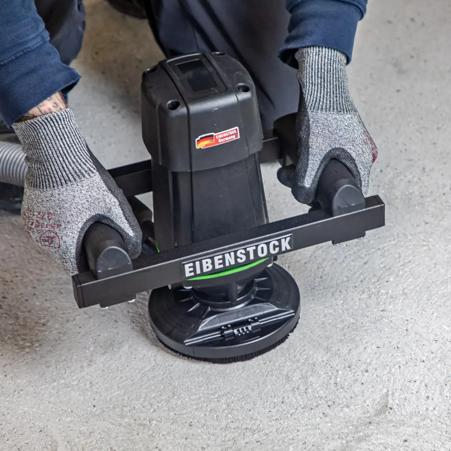 Ideel til mindre og mellemstore slibeopgaver, maskinen sliber helt ind til væg/kant. En del af støvskærmen kan vippes op. Vibrationsdæmpet ergonomisk parallelhåndtag – giver høj komfort, og beskytter håndleddene.