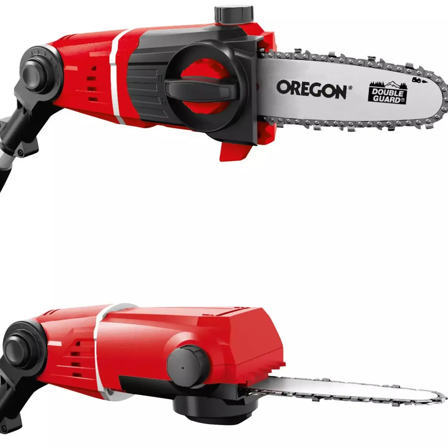 Sværd og kæde fra OREGON er af høj kvalitet og sikrer helt rene snit. Kæden smøres automatisk og kan let skiftes uden brug af værktøj. Hækkeklipper påsatsens skær af laserskåret og diamantslebet stål giver flotte klipperesultater. Multibeskæremaskinen kan tilpasses enhver arbejdssituation.
