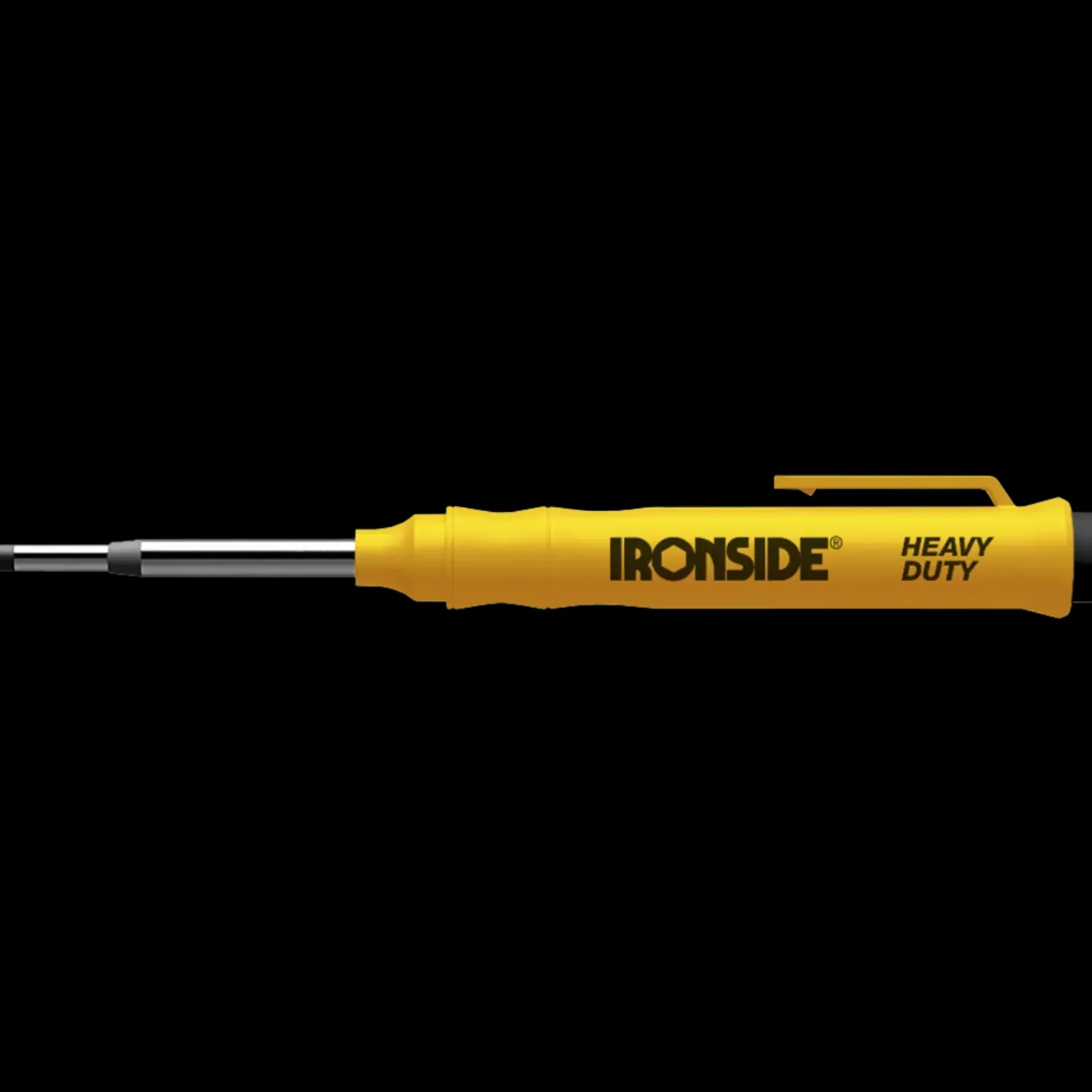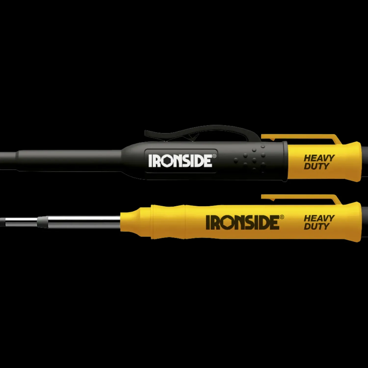 Takket være de unikke 120 mm tilbagetrækkelige, udskiftelige stifter, kan Ironside-blyanten nemt markere gennem bjælker og strøer.