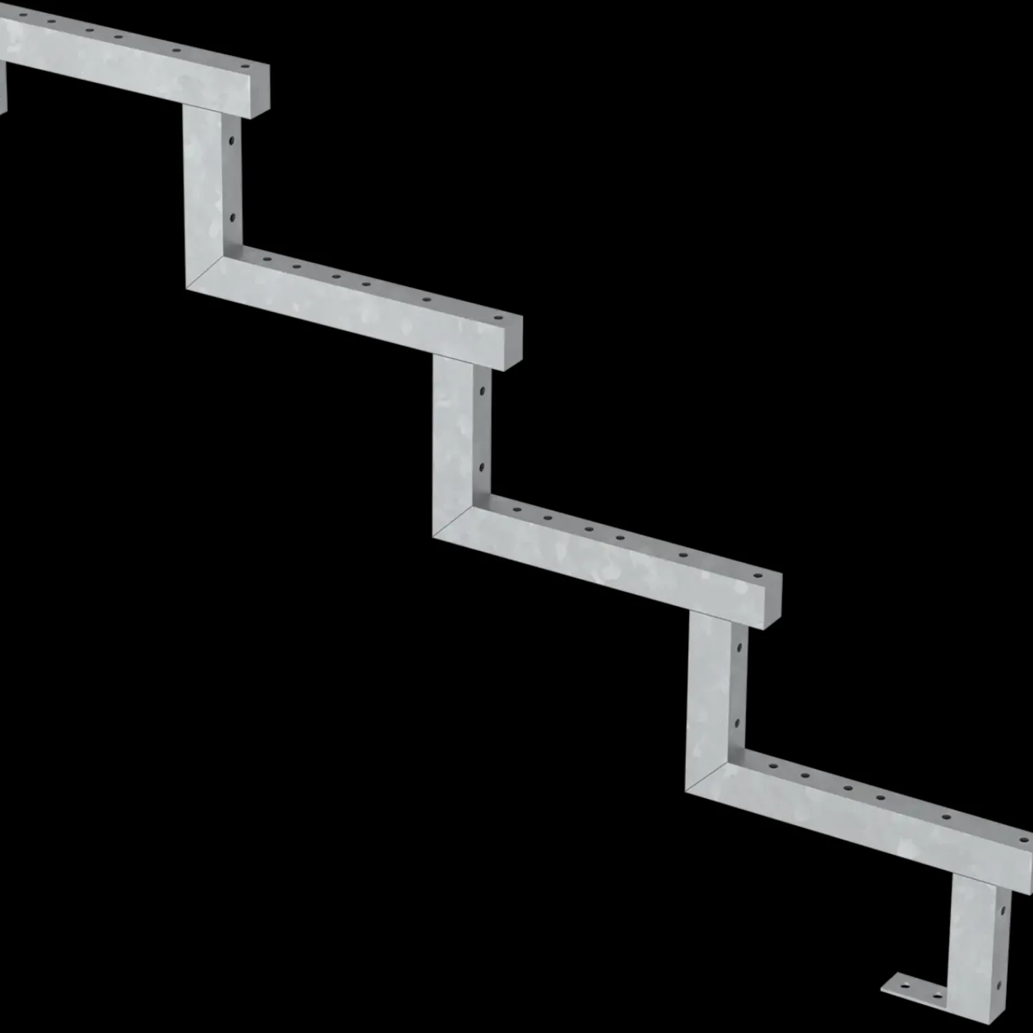rTrappevange 4-trin med fastmonteret beslag. Ekskl. skruer og brædder til trin.