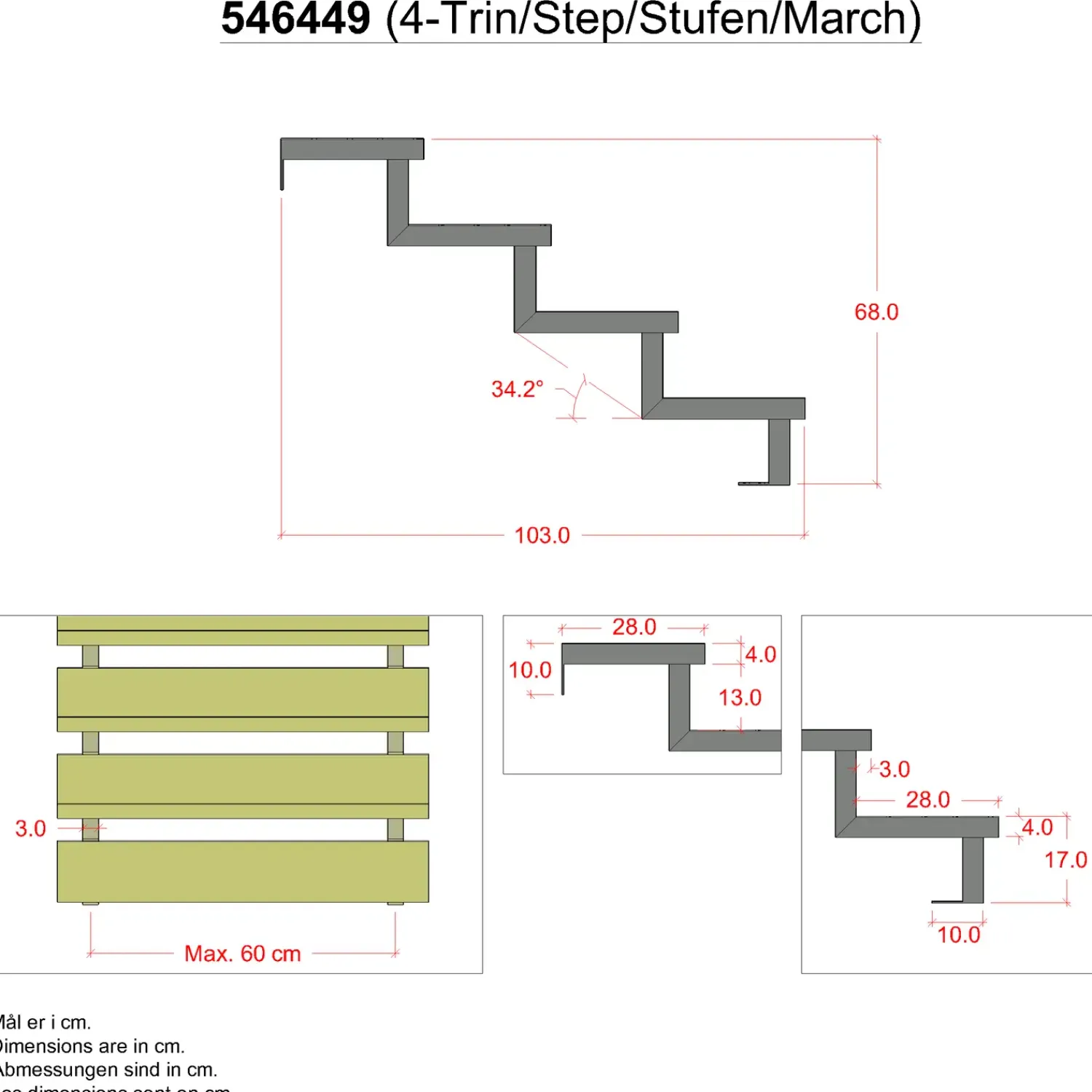 34,2° Trappevange 4-trin m/beslag – Trindybde 28 cm – 546449