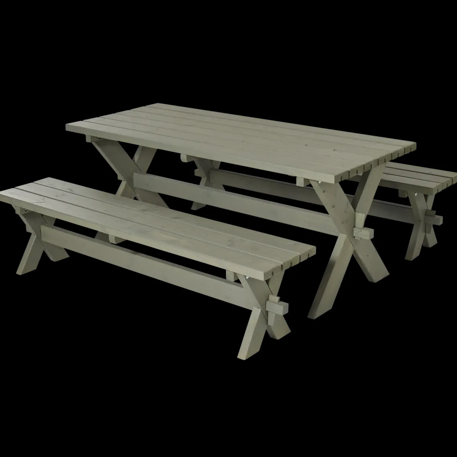 Den holdbare konstuktion gør at du vil opleve et bord-bænkesæt der holder i mange år, og du kan lade det stå ude i alle årstiderne – så længe plankerne vedligeholdes. Plankesættet er fremstillet i trygimprægnæret nåletræ, som er grundmalet. Det trygimprægnæret træ, gør at det er særdeles holdbar overfor det danske klima.