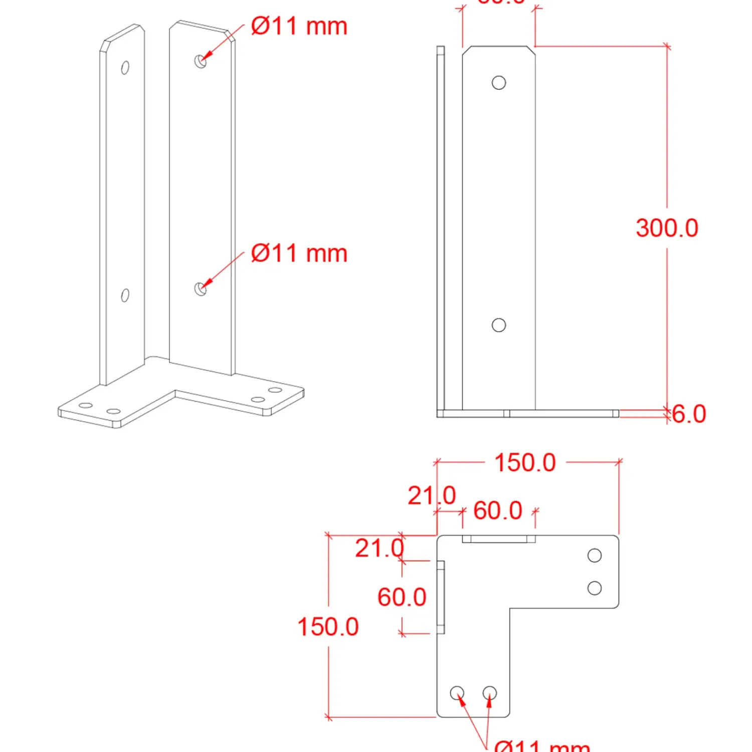 Hjørne Stolpefod 9x9x30 cm til fundament – m/skruer – 14580-15