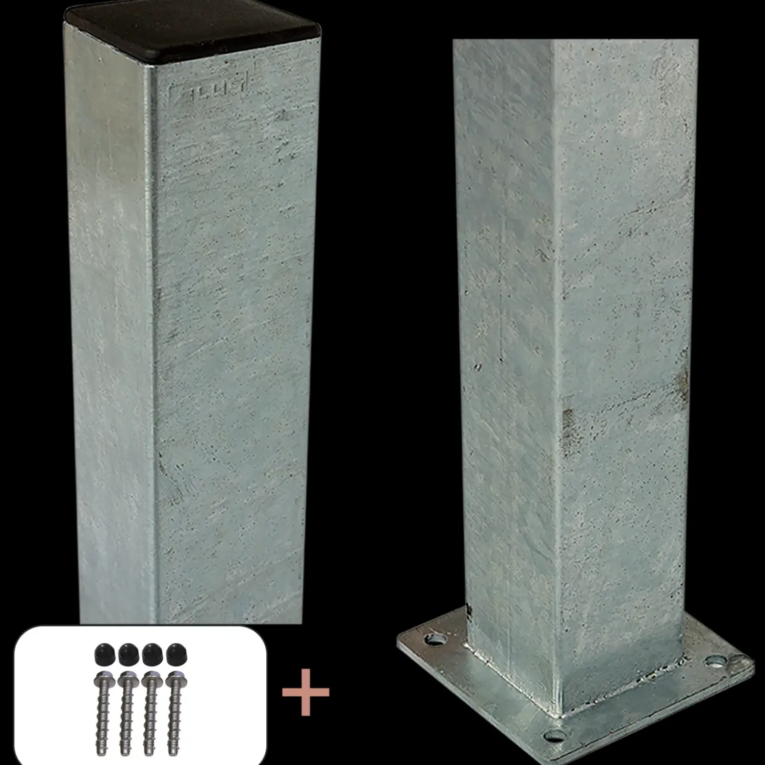 Stålstolpe m/fod 8x8x186 cm – inkl. 1 stk. stolpeafdækning/bolte – 203960-1