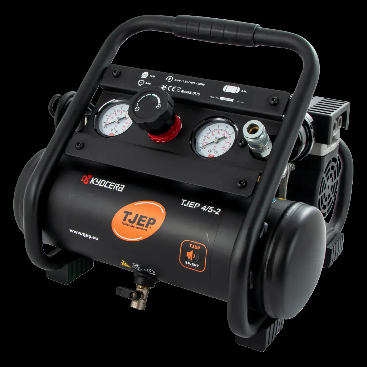 TJEP 4/5-2 kompresser er med et lydtryk på kun 56 dB blandt markedets absolut mest støjsvage. Den støjsvage kompressor kan give en håndværker mulighed for, at starte arbejdsdagen tidligere eller slutte senere, da støjen i langt mindre grad generer naboer og forbipasserende. Derudover medvirker en støjsvag kompressorer til et bedre arbejdsmiljø – specielt ved byggeprojekter, hvor der ofte er dårlig akkustik.