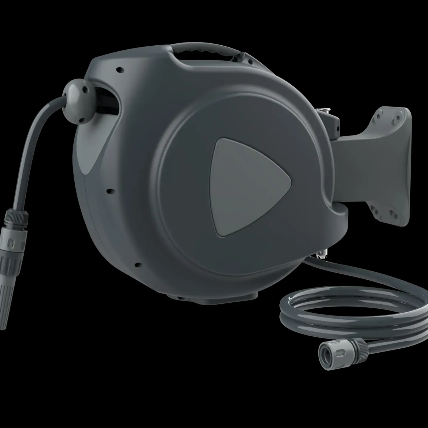 Alt inkluderet i kassen. Klar til at hænge op. Guidet oprulningssystem, så du undgår knæk og snoning af slangen. Kan drejes 180 grader på vægbeslaget og giver dig maksimal fleksibilitet. Den indbyggede lås i oprulleren kan stoppe hvor du ønsker. 20 meters haveslange. Ca. 1,9 meters tilslutningsslange.