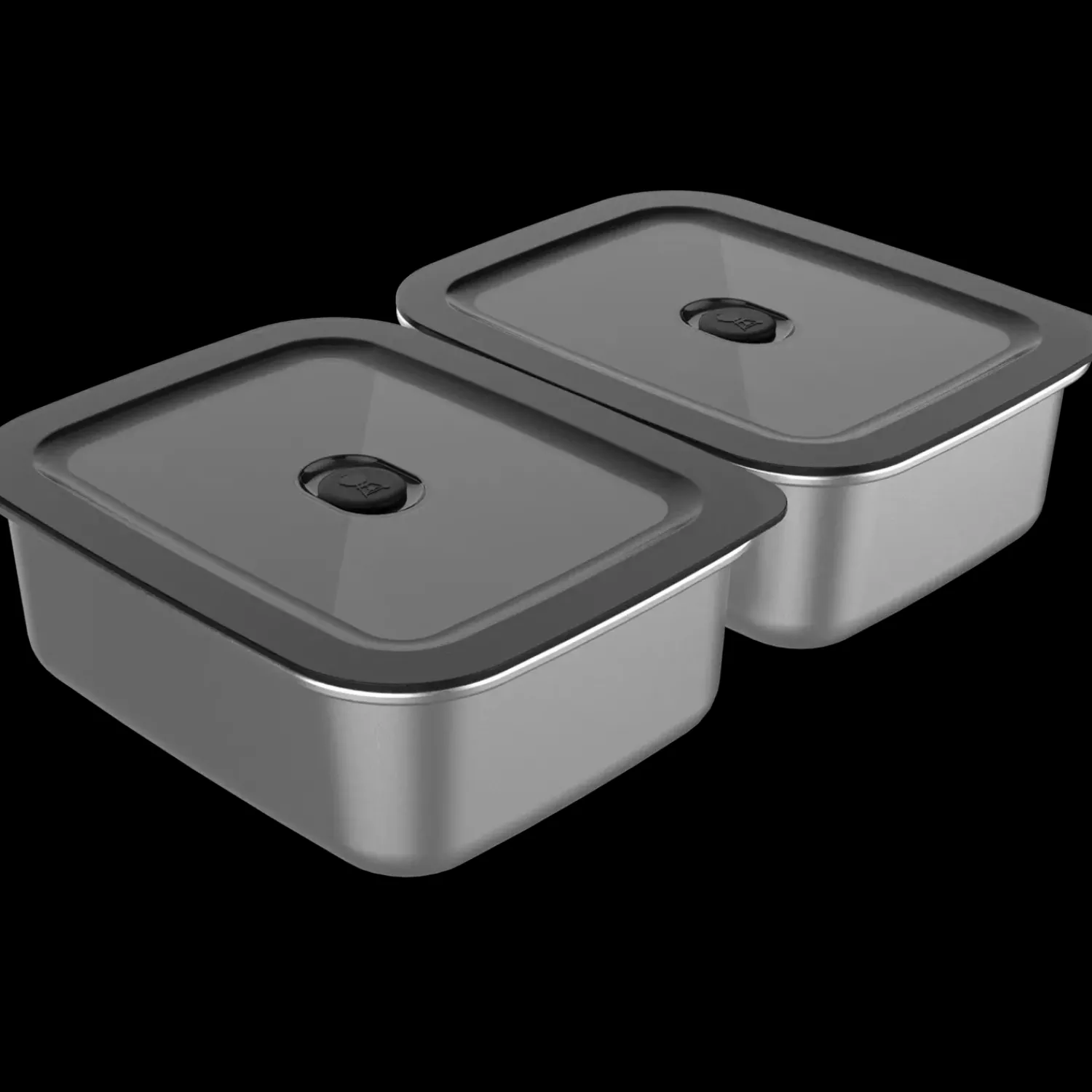 Klargøre, opbevar og transporter dine grillingredienser fra køkkenet til grillen med Weber Works™ Prep Containers. Dette sæt indeholder to beholdere i rustfrit stål med en kapacitet på 1,8 l med det lufttætte låg, er boksen perfekte til at marinere kød, holde styr samt organisere ingredienserne til din perfekte grillning.