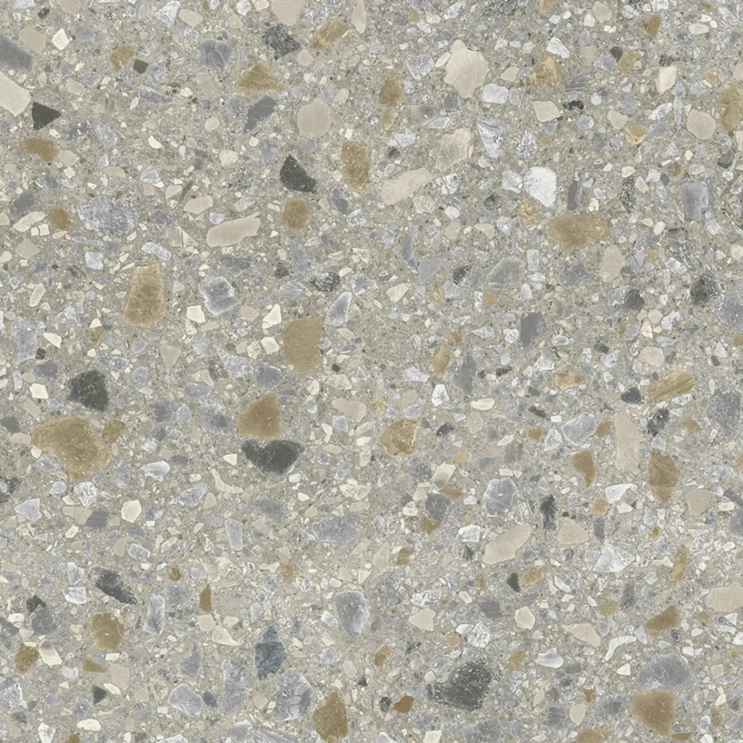 Ceppo di Gré er en grå stenart som indeholder en masse mindre sten. Ceppo di Gré skaber, med sine mange små sten og grå nuancer, et abstrakt mønster på gulvet.