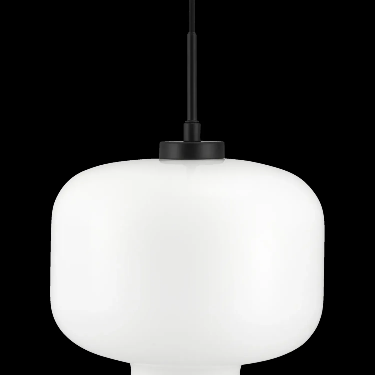 ARP pendel har en lampeskærm i hvidt opalglas. Det er en klassisk model som kan indgå alle alle miljøer, moderne som klassisk. Ophænget er i mat sort metal og ledningen i sort stof. Rosette mod loftet er i samme matte sorte metal som ophænget. Den er nem at montere og justere.