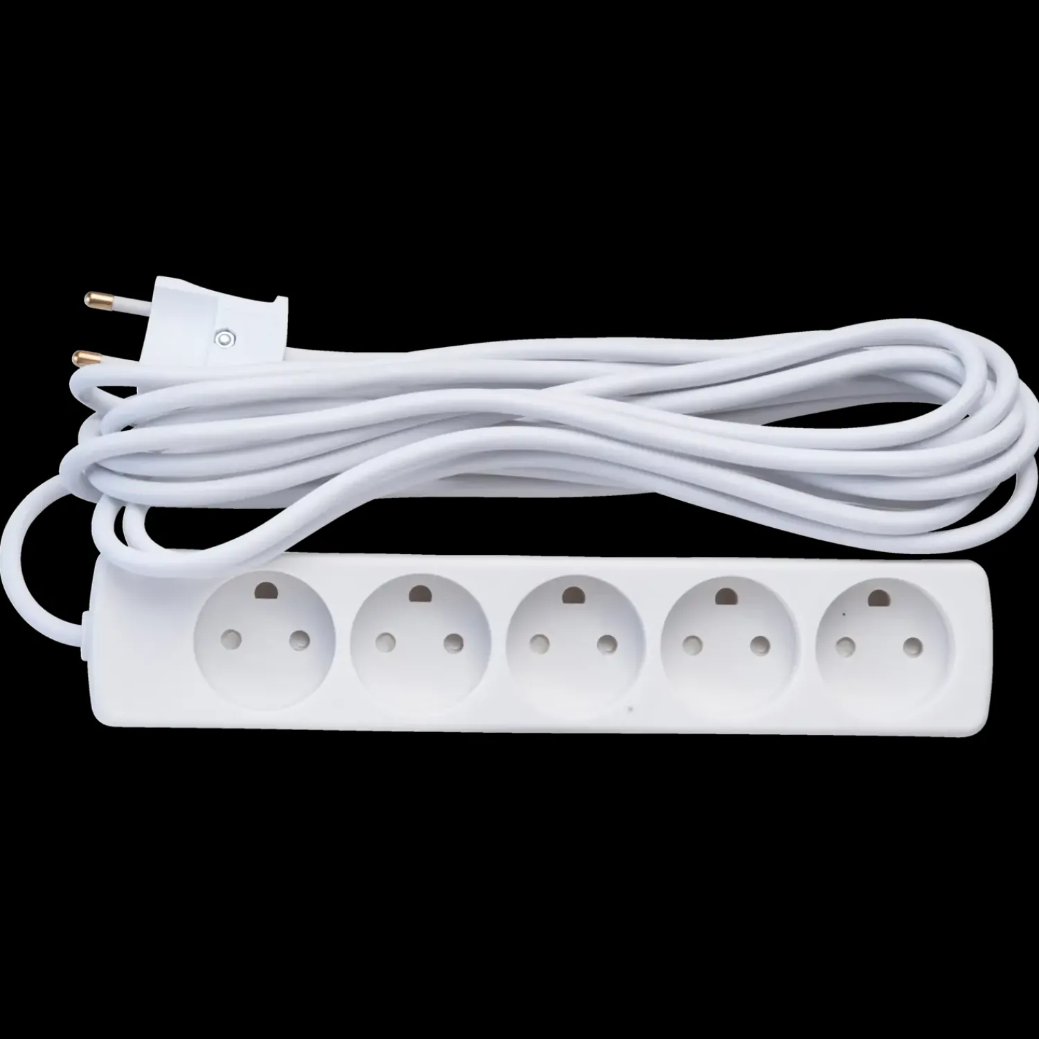 Outlet E-Line stikdåse 5R med jord 5m hvid