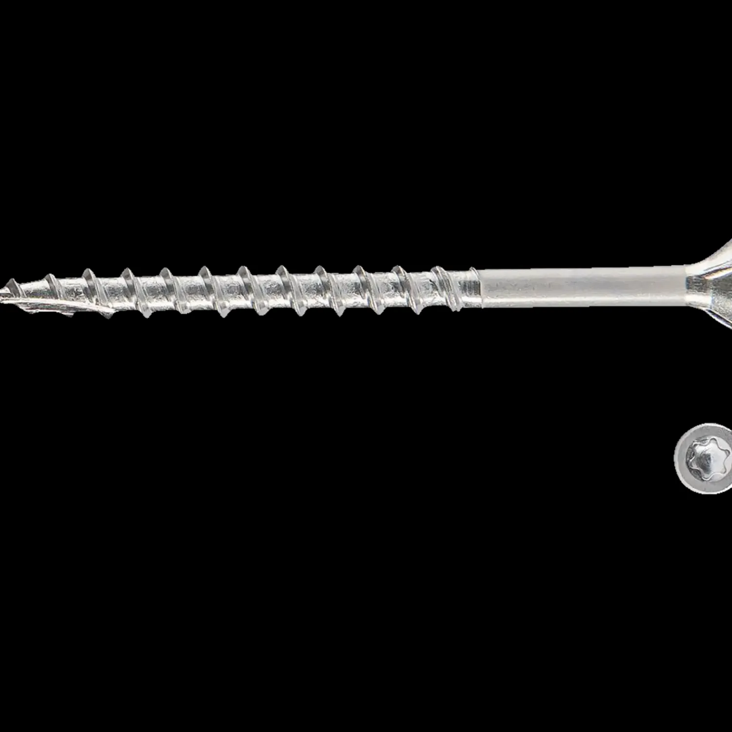 Terrasseskrue i rustfri A4 (syrefast) med undersænket hoved, TX kærv og delgevind. Til udendørs ekstremt brug ved montering af facade- og træterrassebrædder.