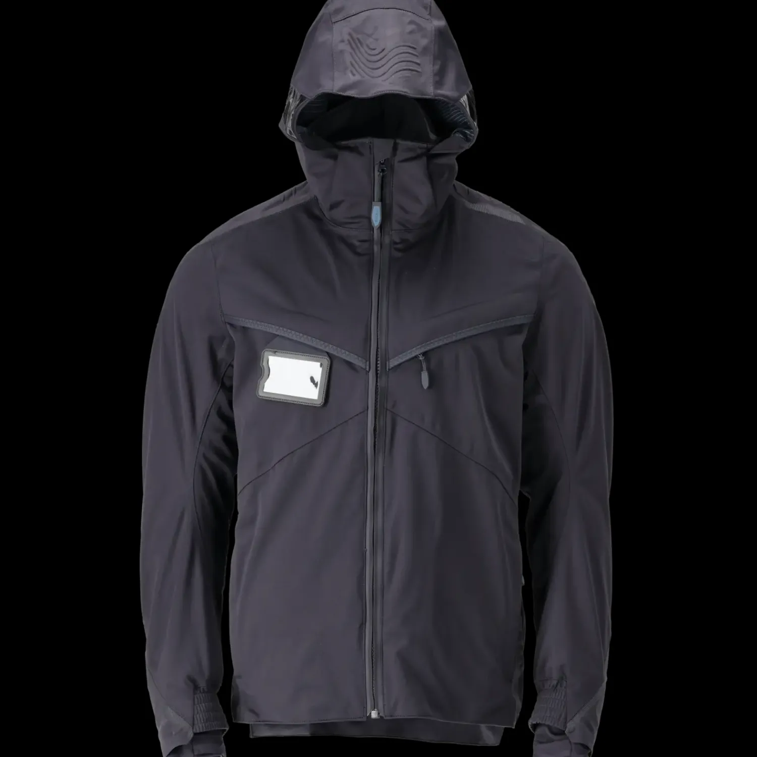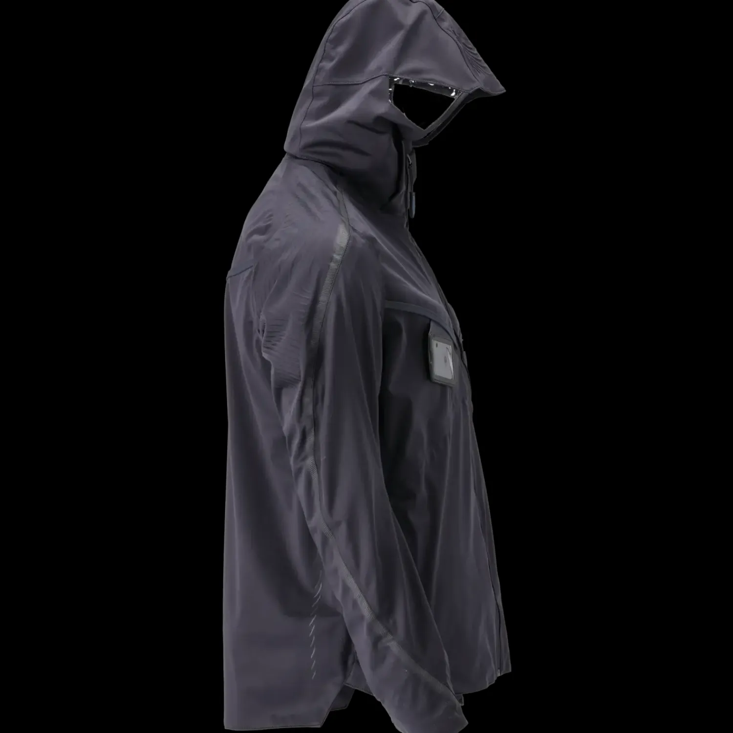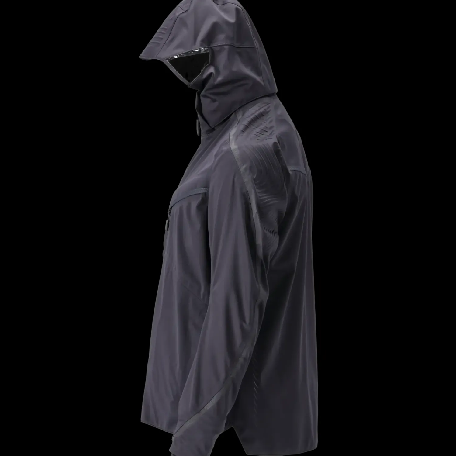 Ultimativt strækstof med lav vægt og høj slidstyrke. Åndbar, vind- og vandtæt. Sømme er tapede. Lukning med lynlås og indvendigt vindfang. Hætten er foret og aftagelig. Hætten har klar plastik i siderne. Høj krave. Brystlomme med lynlås. Forlommer med lynlås. ID-kortholder er aftagelig. Ergonomisk formede ærmer giver stor bevægelsesfrihed. Inderlommer. Elastik i manchet. Rib (skjult i vindfang) ved håndled. Huller til tommelfingrene ved håndled. Ryg er forlænget. Lynlås nederst på ryg indvendigt anvendes ved tryk/broderi på produktet. Reflekseffekter.