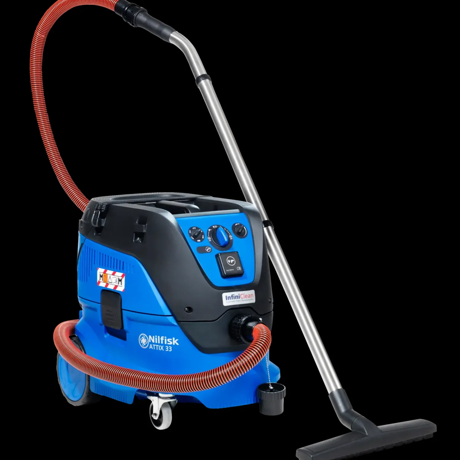 De nye våd-/tørsugere i ATTIX 33 M-H serien er konstrueret og designet med fagfolk i tankerne. Våd-/tørsugernes sugestyrke er meget høj i kraft af nyudviklet konstruktion. Det betyder forøget ydeevne samt forbedret lufthastighed i slange, mundstykke og værktøjskobling. Resultatet er eminent opsamling af støvpartikler og produktivitet. Nilfisk InfiniClean™ systemet renser automatisk filteret hvert 15. sekund.