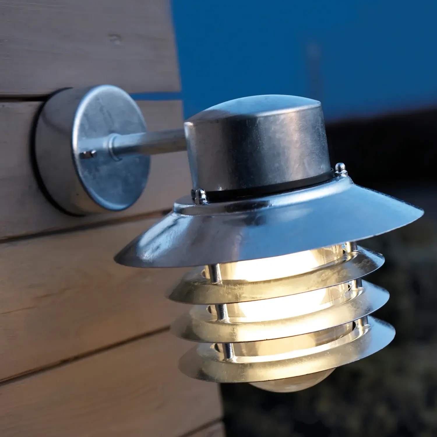 Fremstillet af galvaniseret stål med klart glas gør at denne Nordlux væglampe er ideel til hårdere omgivelser, som eksempelvis kystnære områder, hvor både sand, salt, blæst og bølger kan have sin indvirkning. Det er muligt, at sammenkoble flere Vejers væglamper via parallelforbindelse.