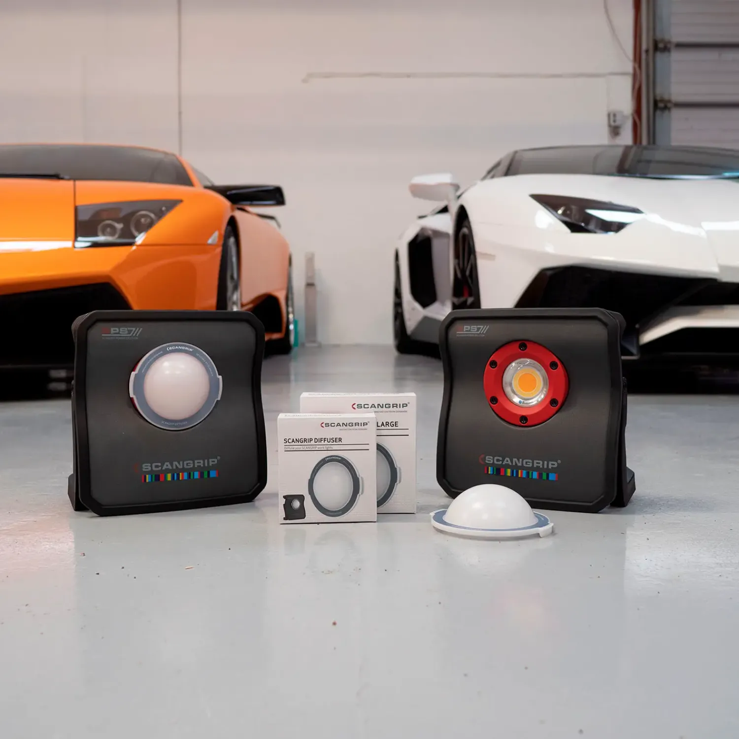 Lysspreder eller “diffuser” der er konstrueret for lave et diffust og meget blødt lys, samtidig med at hårde skygger undgås. Lyssprederen er meget let og monteres nemt og sikkert med den kraftige indbyggede magnet på dine SCANGRIP-lamper. Lyssprederen er specielt egnet til at afsløre matte områder og støvpartikler i maling, samt under arbejdet med udretning af buler i biler.