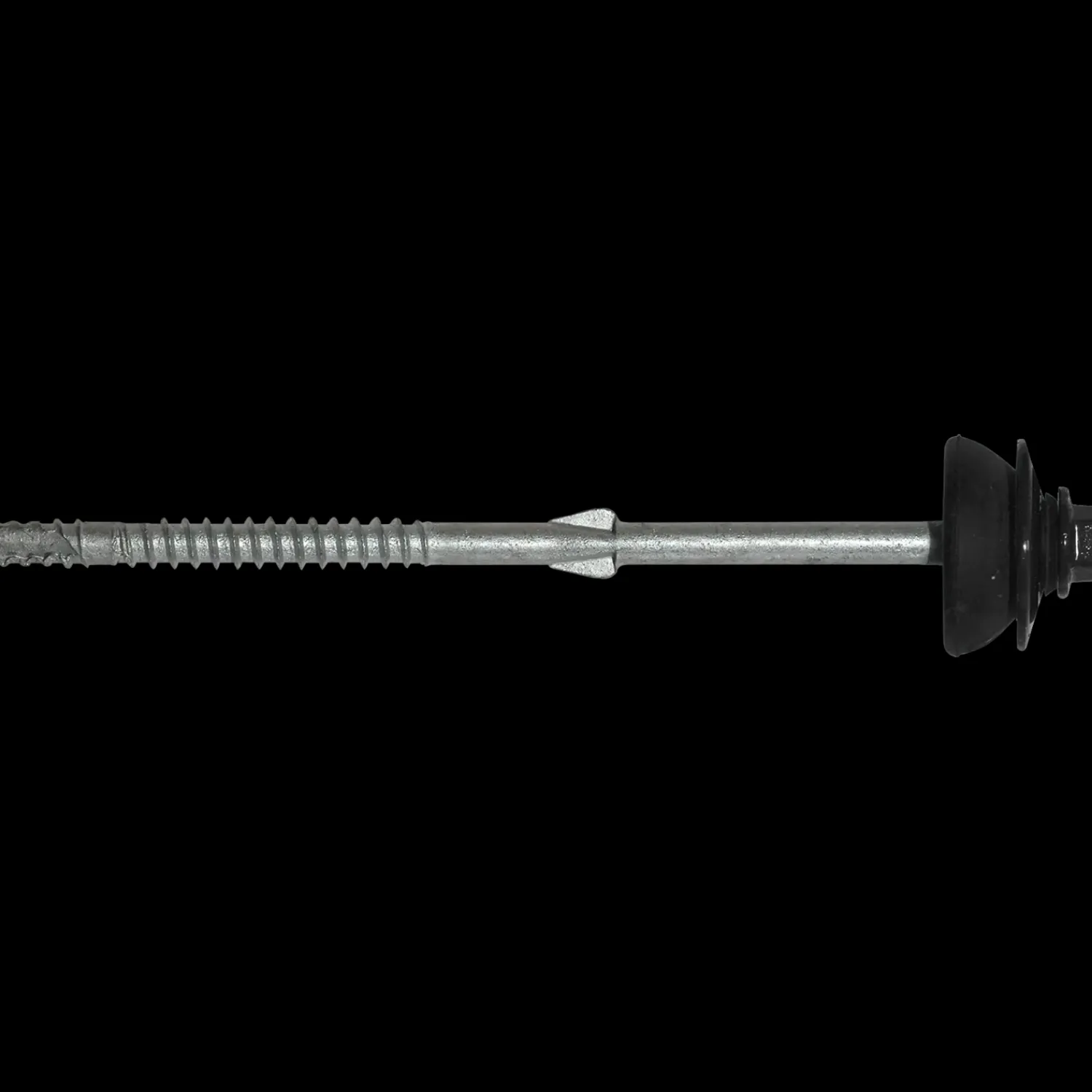 Varmgalvaniseret eternitskrue med sortmalet 8 mm hoved. Skruen er med borespids og vinger der gør at man ikke behøver at forbore i eternitpladen før montering.