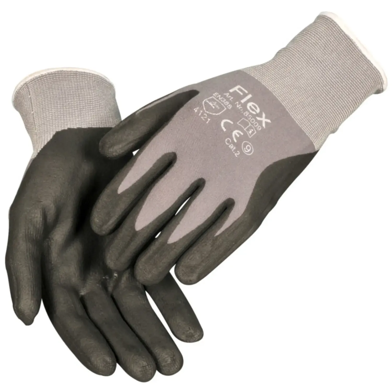 Overhånden er lavet i en kombination af polyester, nylon og elastan, hvilket giver dig fuld bevægelighed. Handskens håndflade og fingre er belagt med MicroZeal, som giver dig et særdeles godt greb. Som noget helt unikt har denne handske også vibrationsdæmpende skum med en særlig langtidsvirkende effekt, så du mindsker gener af dit arbejde.