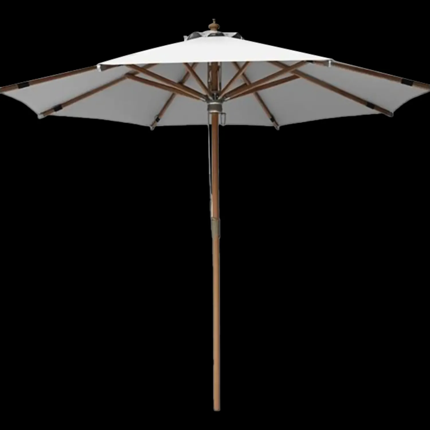 Parasollen er med 48 mm træstok, leveres uden parasolfod.