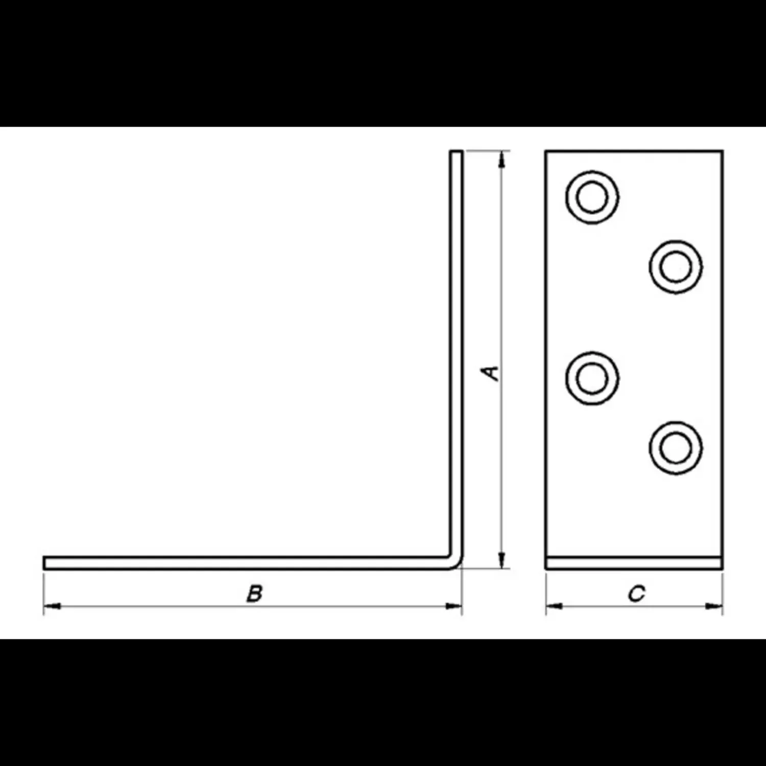 Elforzinket vinkeljern.Yderligere information:Skrue bolt: 5 mm.A: 90 mm.B: 90 mm.C: 38 mm.Dim.: 2,5 mm.Se skitse.Vare…