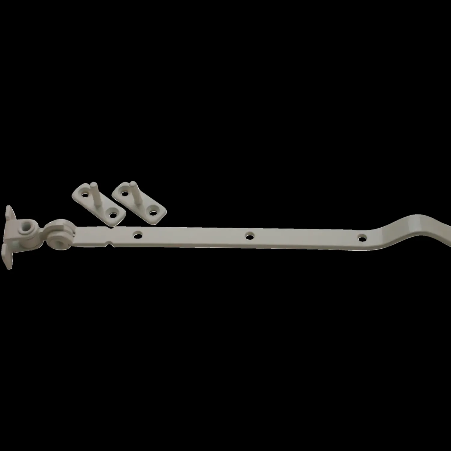Vindues udskyder i hvid pulverlakering.Yderligere information:Skrue bolt: 4,0 mm.A: 305 mm.B: 16 mm.Godstykkelse: 4 mm…