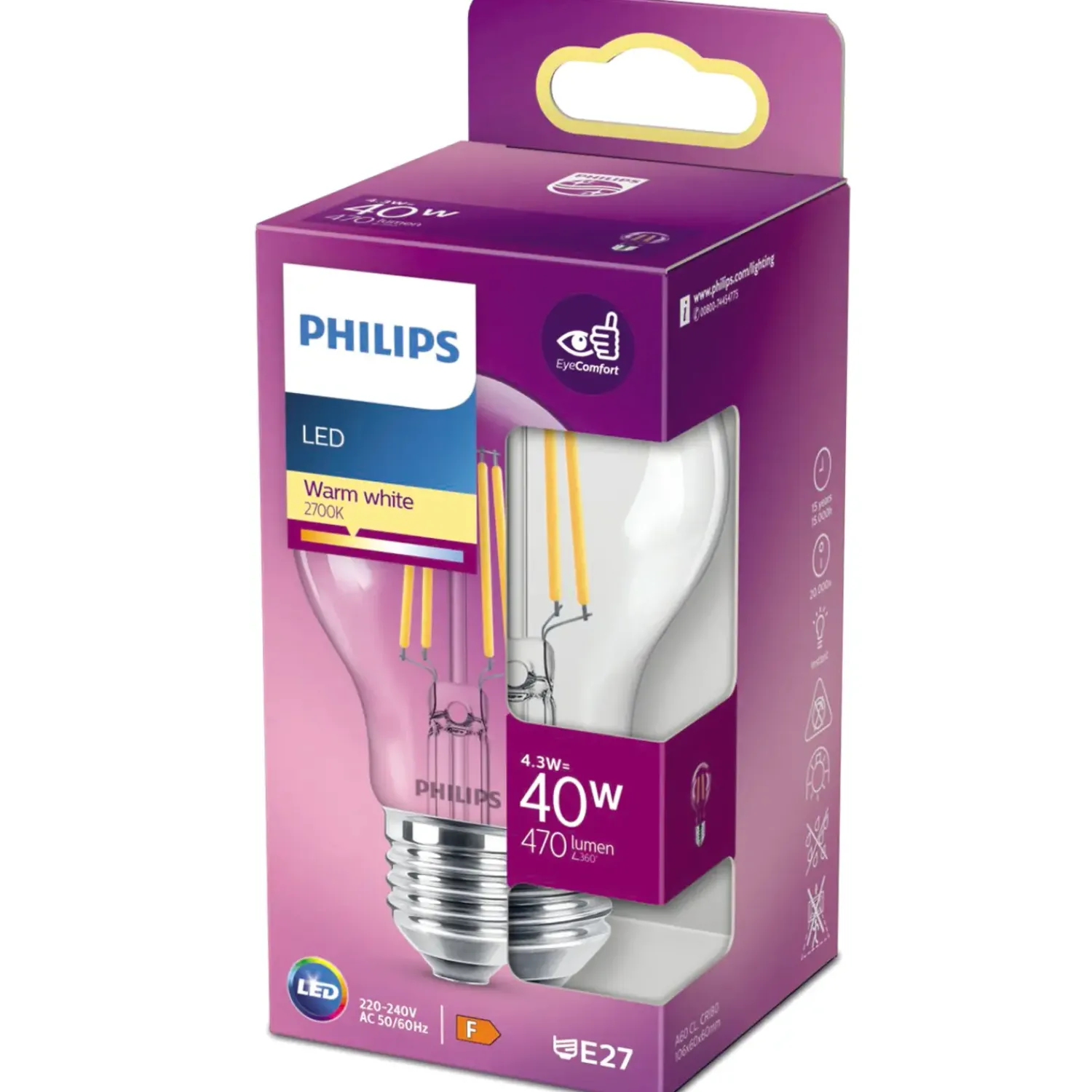 Philips LED pære 40W standard klar (ikke dæmpbar)