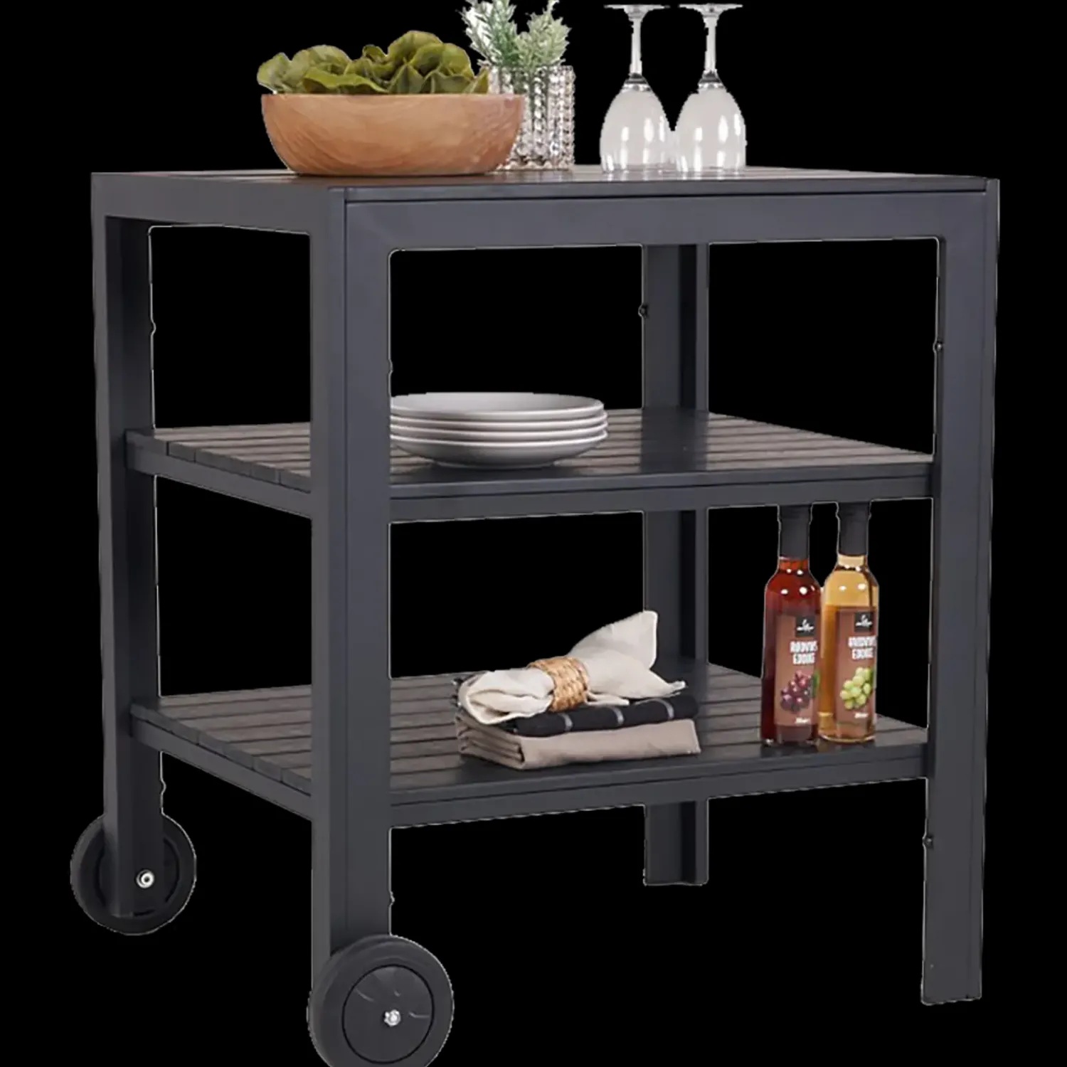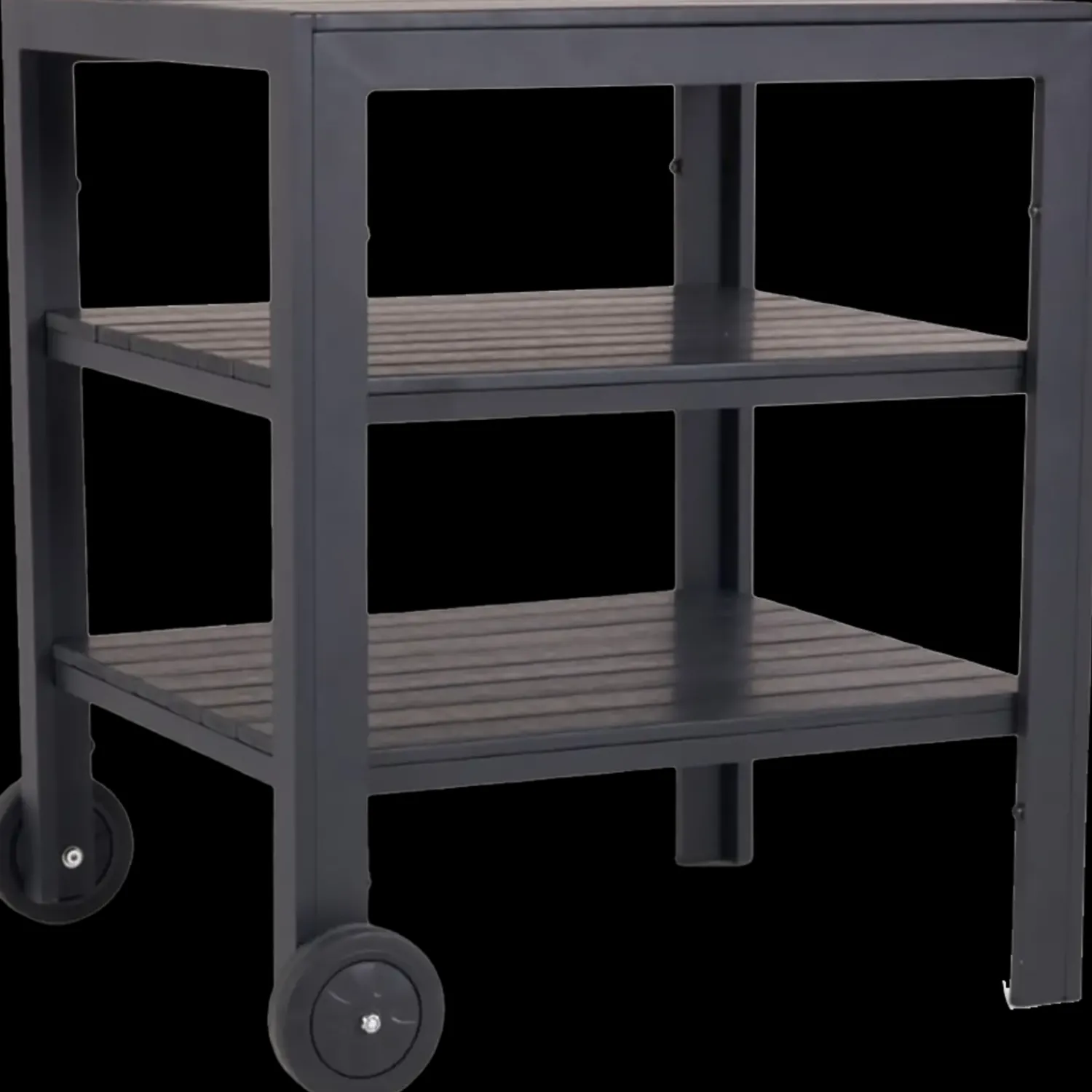Grill- eller afsætterbord med 2 hylder. Sort nonwood og stel i stål 57x75x65 cm.Rengøres med vand og sæbe uden opløsningsmidler.OBS: Bordpladen skal beskyttes mod varme genstande..