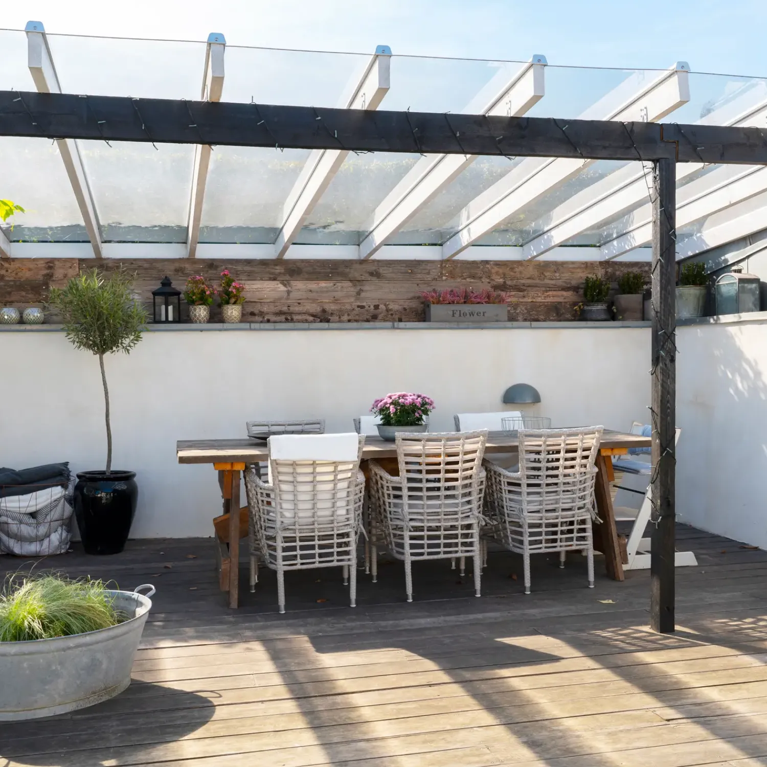SunGlaze kan anvendes til alle former for overdækninger, hvor der ikke stilles krav til isolering. Plader i 4mm klar eller røgfarvet polycarbonat.