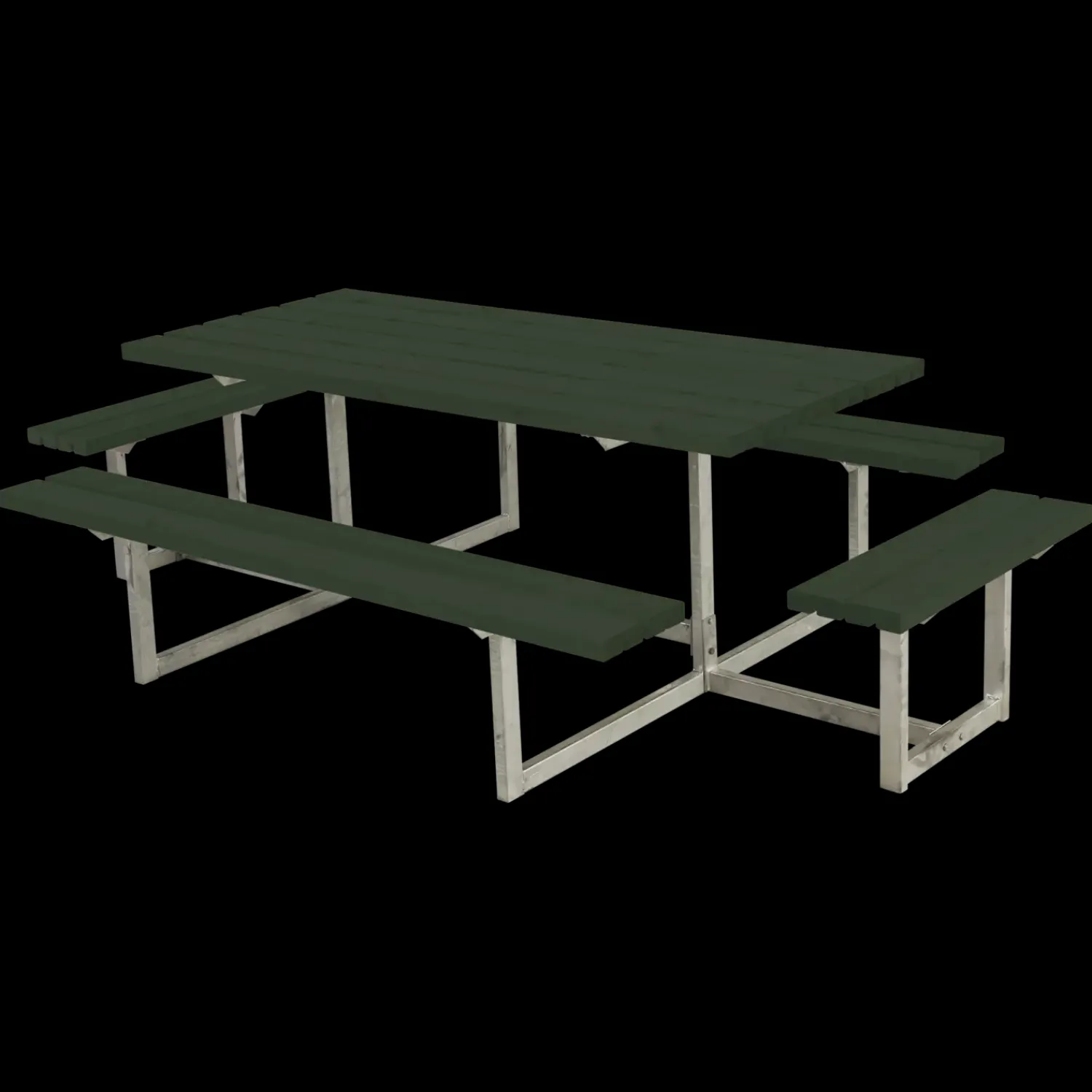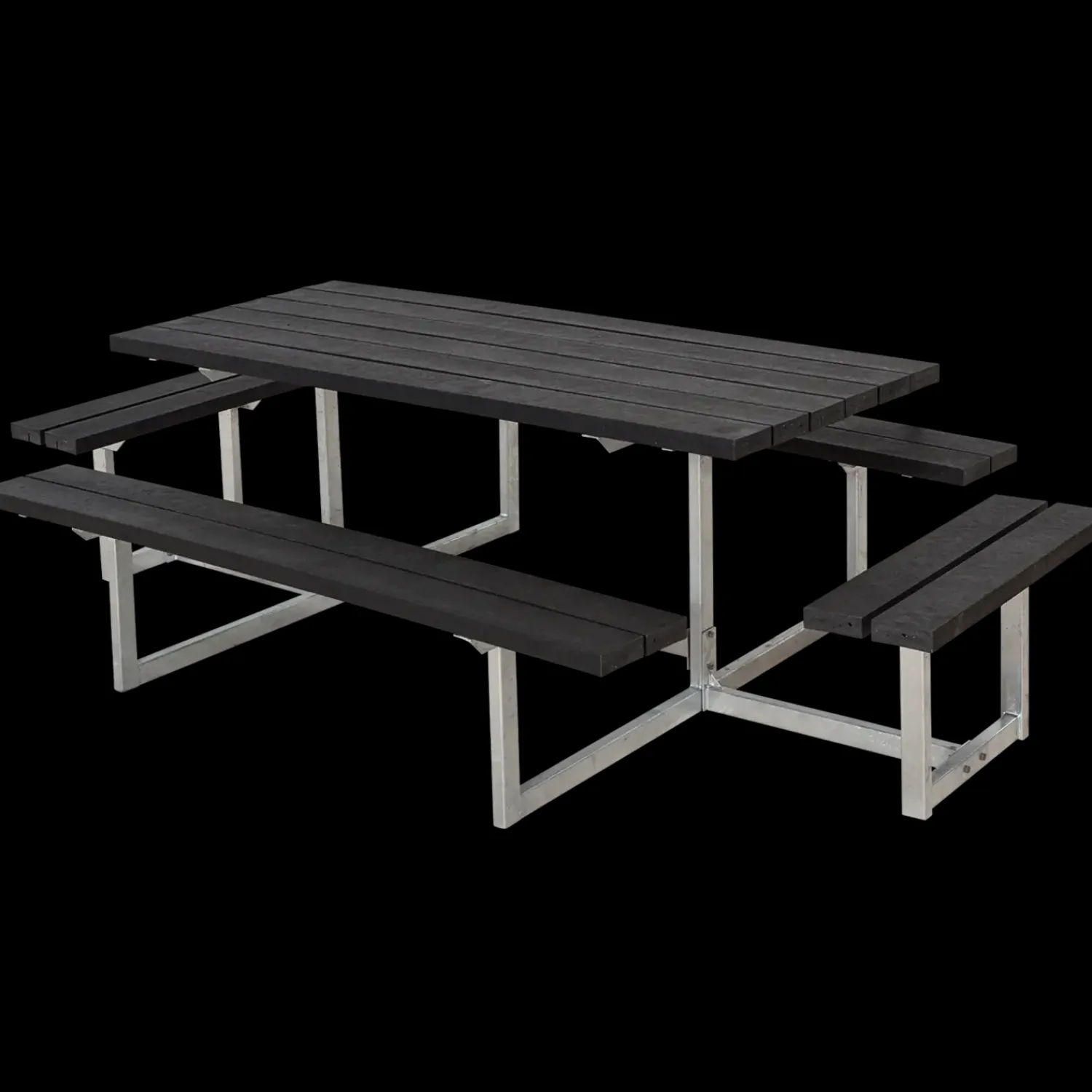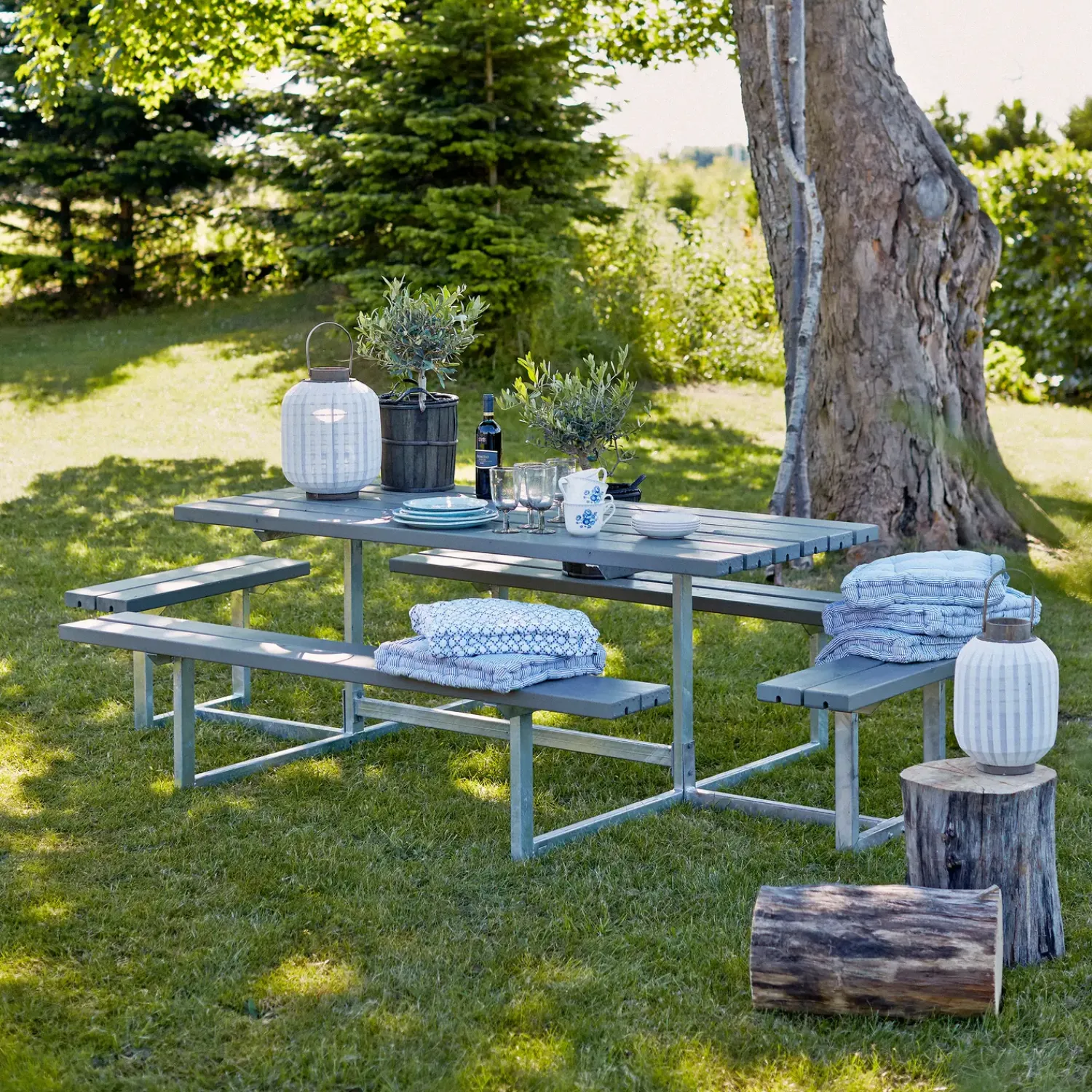 Skønt klassisk og slidstærkt havemøbel med bord bænke monteret på stærk stålramme, super praktisk til hyggestunder i haven, nemt at flytte efter sol og læ da bord og bænke hænger sammen. Sættet leveres med to påbygninger for hver bordende.