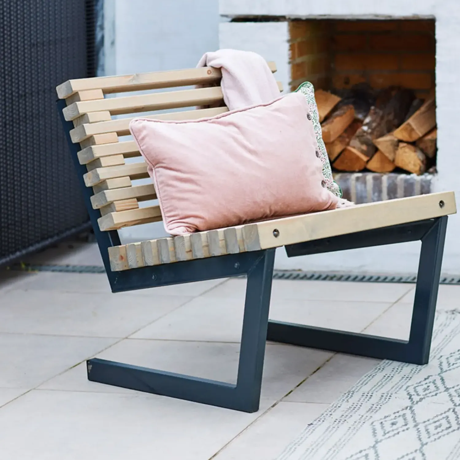 Med Siesta Trallestol, fremmstillet af mærkede traller i drivtømmerfarve, får du en rustik stol der skaber råhygge på varme sommeraftener. Til stolen findes også en matchende stol og bænk/bord samt hynder.