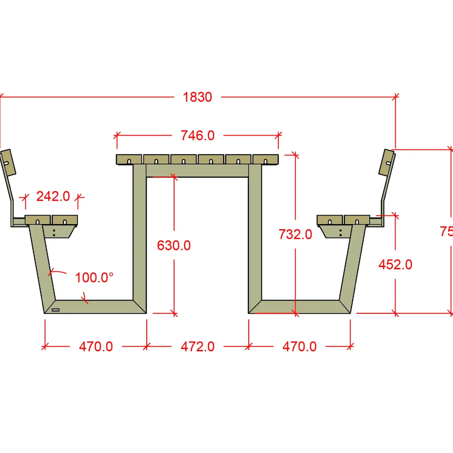 - 2x ryglæn: 76 cm.Stel/ben: 40×60 mm varmgalvaniseret stål