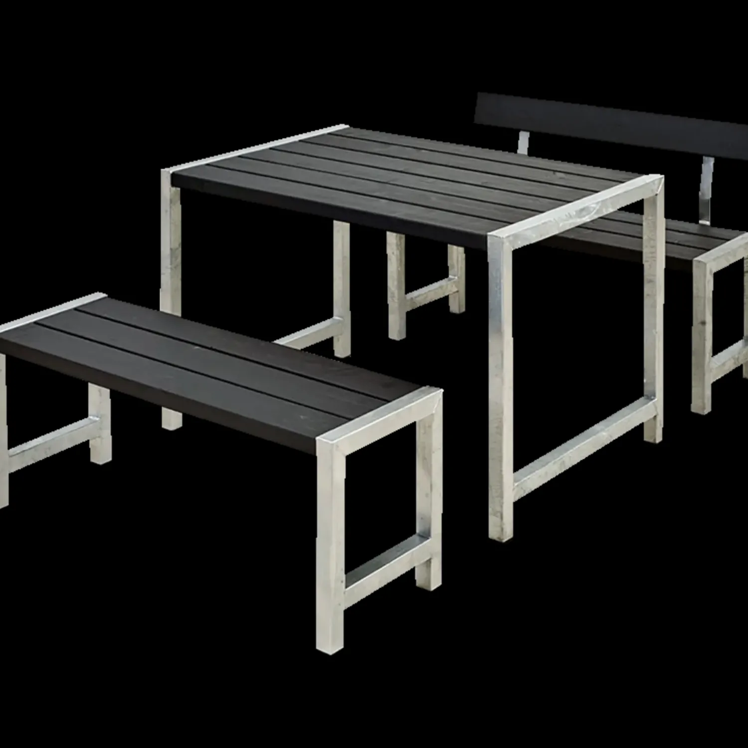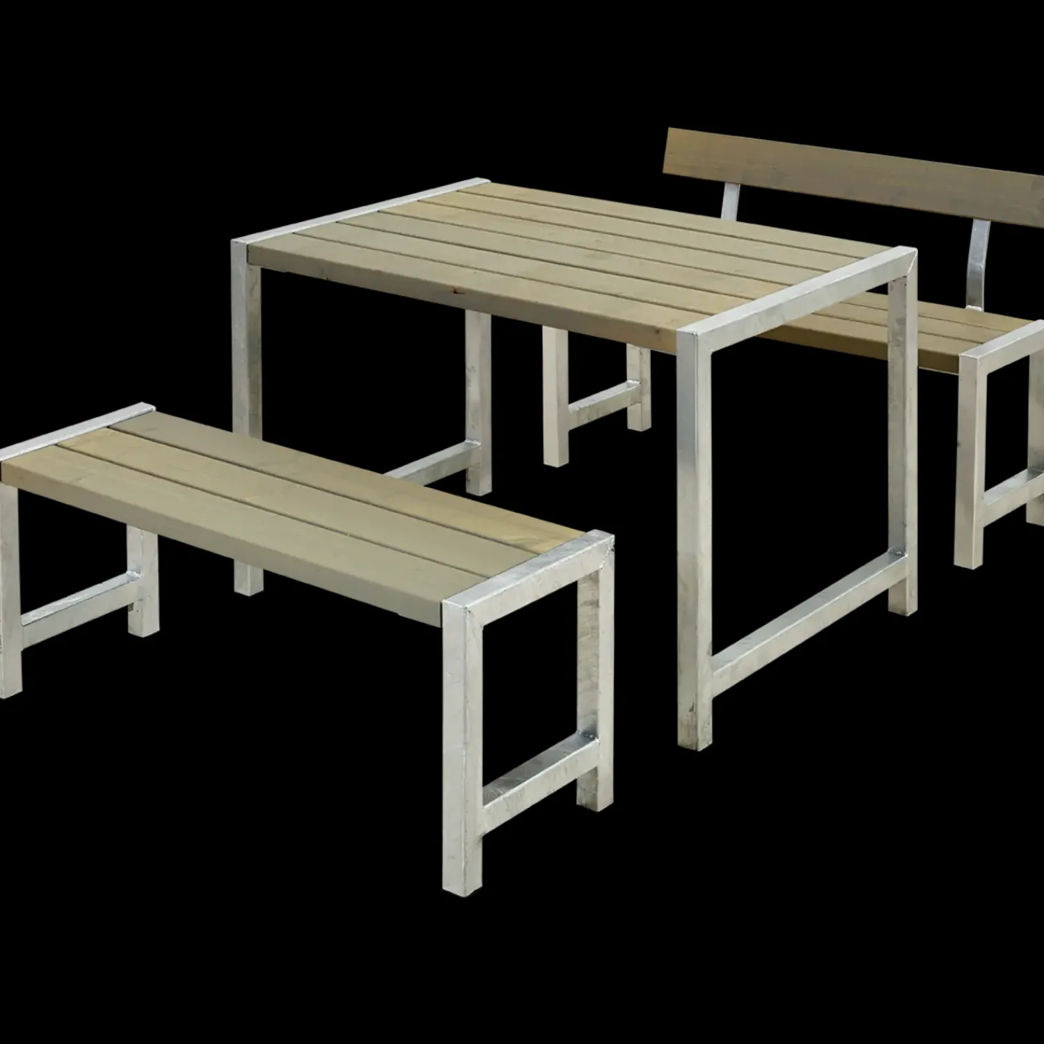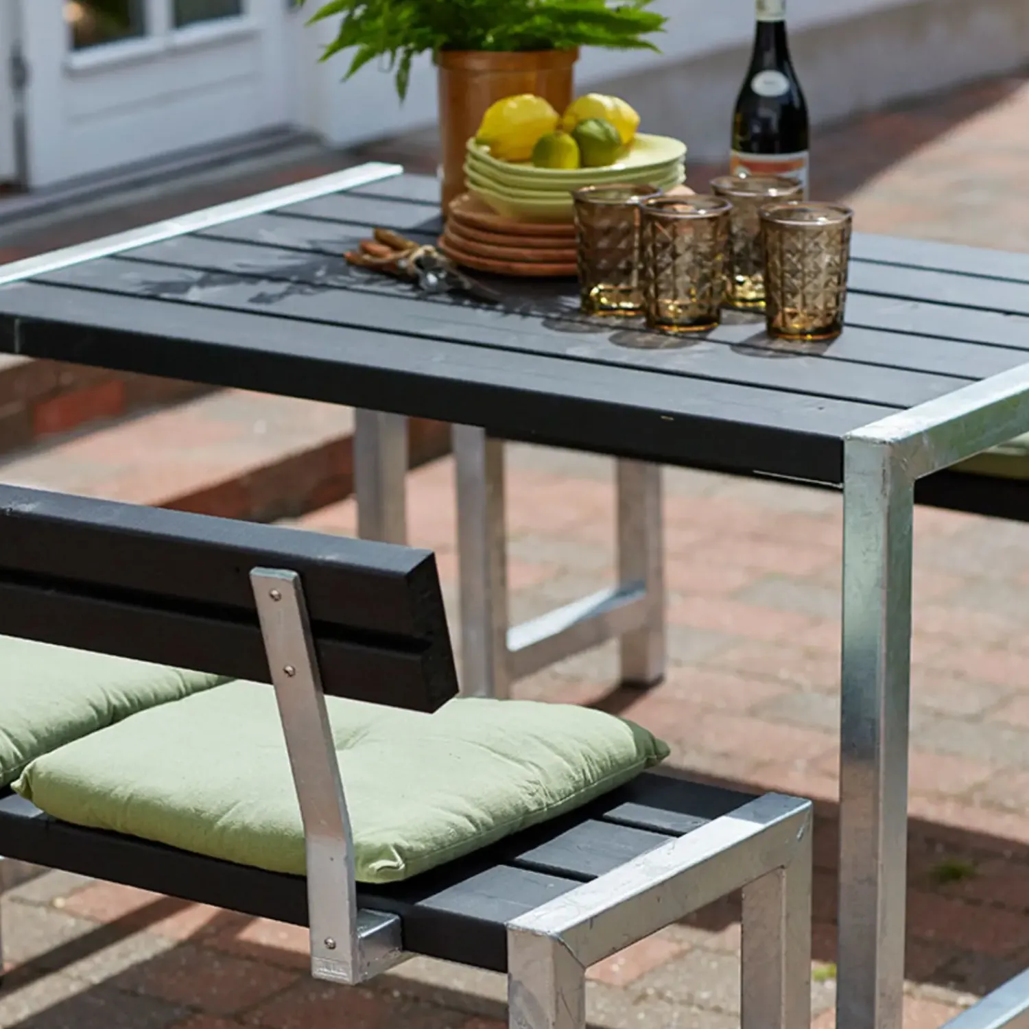 Dette bord/bænkesæt indbyder til at samle familien, rundt om det bordet. Her kan rammerne skabes for de hyggelige sommer stunder på terassen, hvor det firkantede bord/bænkesæt indbyder til snak og grin på kryds og tværs af bordet.